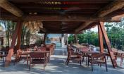 餐廳的燈光設(shè)施是大燈籠,由輕型的金屬結(jié)構(gòu)框架和五彩的帆布制成。它們不僅僅是餐廳的照明設(shè)施,還是保護(hù)顧客不被雨淋、不被太陽曬的屋頂。此外,當(dāng)從城市里觀察這個度假勝地時,這個五彩斑斕的燈成為了這個區(qū)域的地標(biāo)建筑。