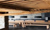 盡管這些建筑的外形、屋頂和室內(nèi)結(jié)構(gòu)已經(jīng)被重新設(shè)計和改造,但現(xiàn)有建筑的面積得到了保留。后院現(xiàn)在成為了一個大型有遮蓬的開放空間,并用舊屋架進行了翻修,卻使用了當?shù)靥厣奈蓓斚到y(tǒng)——木材和瓦片之間沒有粘結(jié)材料。