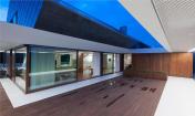 結(jié)構(gòu)的上層部分被修改和從社區(qū)中分離出來(lái),采用人工河岸代替柵欄,利用另外兩座側(cè)翼建筑用于其輔助功能:車庫(kù)和游泳池。波浪形的木質(zhì)墻壁和一個(gè)綠色屋頂弱化了兩座側(cè)翼建筑的形狀,與周圍環(huán)境融合在一起。