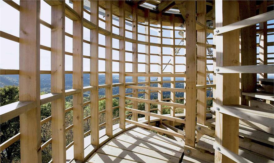 Jára da Cimrman的燈塔和博物館建立在Aleš Voverka給予的資助之上。他們補(bǔ)充了Jizera山Píchovice之下的南坡上的U ?ápa建筑物。觀光塔和博物館應(yīng)該在夏天為賓館帶來更多的游客。投資者一直想要用他們自己的資源(無補(bǔ)貼)來建立一個(gè)很美好而且很有用的這么一處地方。他們最關(guān)心的是這里特殊而美麗的景觀框架;他們建起牧場(chǎng)和小路,精心安排行道樹,并且建立了一個(gè)觀光塔。Cimrman’s Times博物館幾乎難以被看見。它完全嵌入土坡而且被一面石墻覆蓋著。這面石墻和別的墻體自然地連到一起,沿著等高線交叉穿過基地??梢哉f這是當(dāng)?shù)氐湫偷臋M向元素。建筑的審美概念是基于橫向墻體與燈塔的豎向木結(jié)構(gòu)之間的對(duì)比。石頭是直接從采石場(chǎng)挖來的,而木頭來自Jizera山(花旗松做框架,橡木做樓梯)。參觀者通過石墻上的一個(gè)洞進(jìn)入博物館,接著經(jīng)過從博物館正中心升起的螺旋樓梯,上到燈塔18米高的觀景臺(tái)。燈塔頂部設(shè)置了一些典型功能,例如畫廊,桅桿,旗桿,和分段玻璃。它還包括了一個(gè)印有風(fēng)景介紹的全景板。