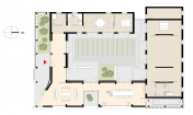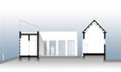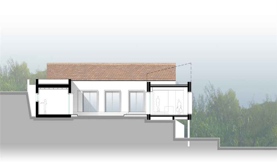 場地內(nèi)原有的房子是一座極其典型的按當(dāng)?shù)亟?jīng)驗構(gòu)筑的建筑,正規(guī)而實用。在原有建筑的L-型平面上,擴(kuò)建部分與原有部分圍合出一個方形中心庭院。