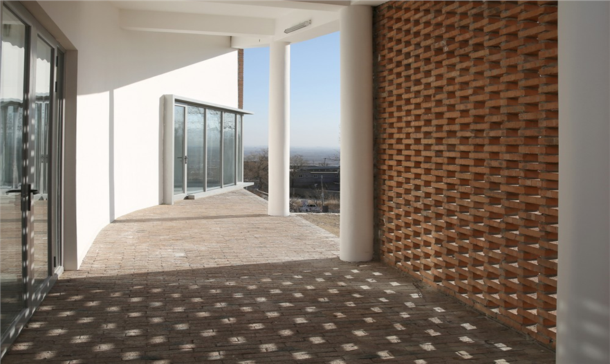 新建筑呈現(xiàn)出一種現(xiàn)代式的幾何形態(tài)。在東南角展現(xiàn)出了傳統(tǒng)屋頂?shù)那€輪廓并為重要的房間提供了美麗獨(dú)特的室內(nèi)高度。磚是當(dāng)?shù)厣a(chǎn)的傳統(tǒng)建筑材料,它們構(gòu)成了建筑的整體外觀。實體墻和鏤空墻交替轉(zhuǎn)換,這種手法重新詮釋在庭院的地面上,使擴(kuò)建部分與翻修部分聯(lián)系在了一起。