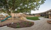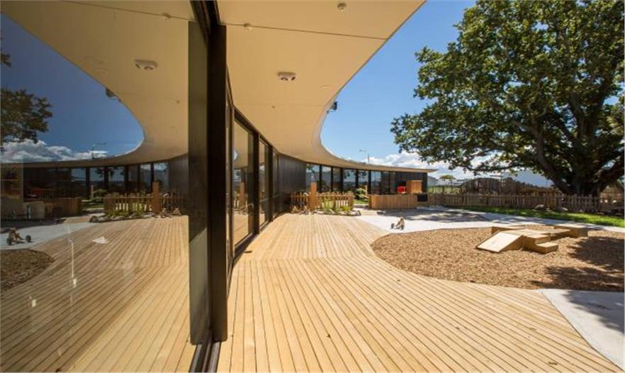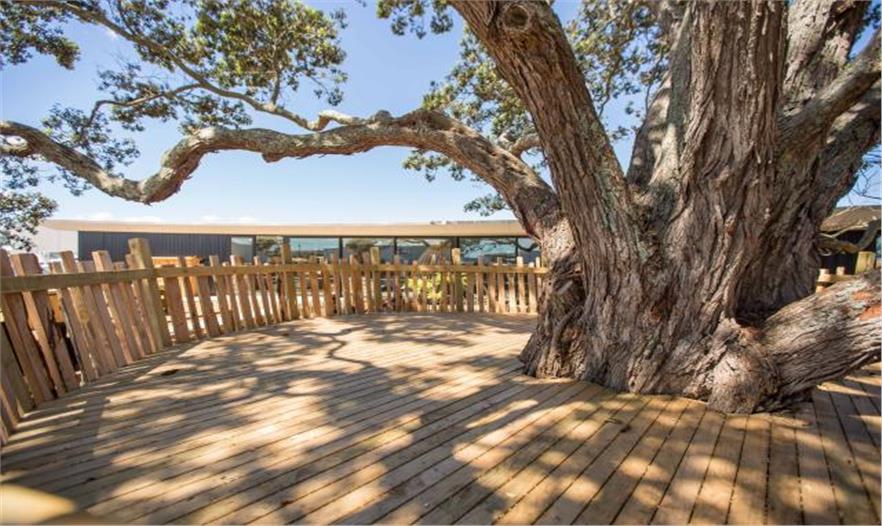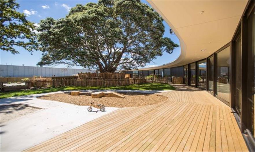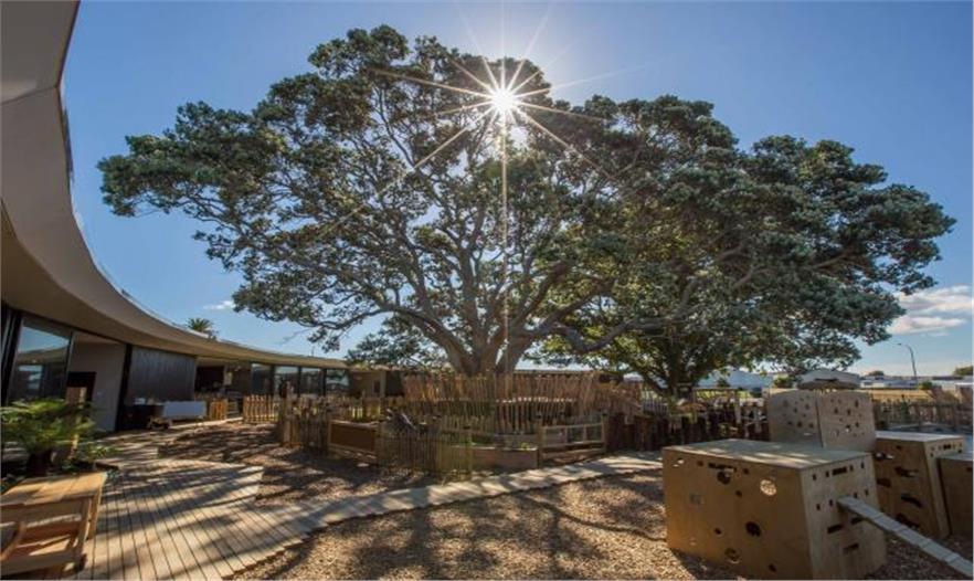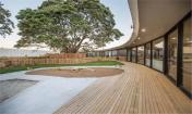 該項目場地位于一片商業(yè)區(qū)內(nèi),場區(qū)內(nèi)有兩棵大樹,樹下的空地不可能拿來使用。從商業(yè)意義上講,盡管這塊場地不實用,但的確可以呈現(xiàn)給人們一座獨特漂亮的景觀。設計團隊意在設計一座托兒所,且希望將一些歷史元素融入設計,呈現(xiàn)一種精神價值。從場地本身出發(fā),這兩棵大樹既是難題,又是靈感來源。