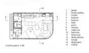 A部分:住宅平屋頂A部分位于轉(zhuǎn)角地段,面對南面和西面的街道,這部分陽光明媚、空氣清新、視野良好。水平橫向長窗以及屋頂陽臺面向拐角處,充分利用了場地所有的特色資源。透明的玻璃被用作橫向長窗,安置較高的水平位置上,以避免路過行人張望。