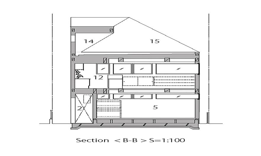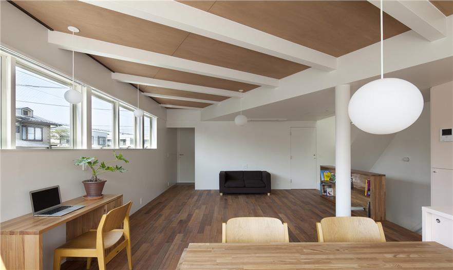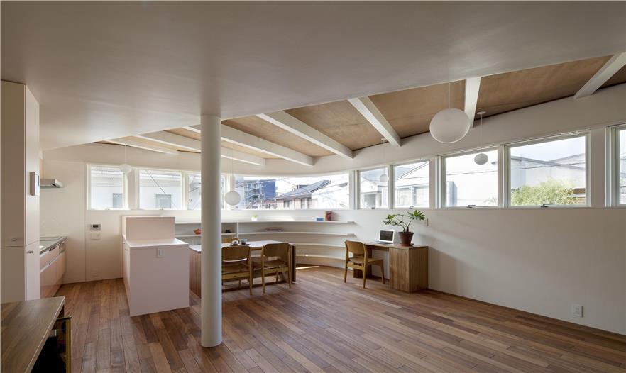 室內(nèi)天花不做裝飾盡可能地做高。布置了起居室、餐廳和臥室等功能用房。
