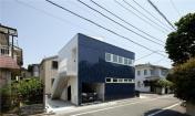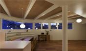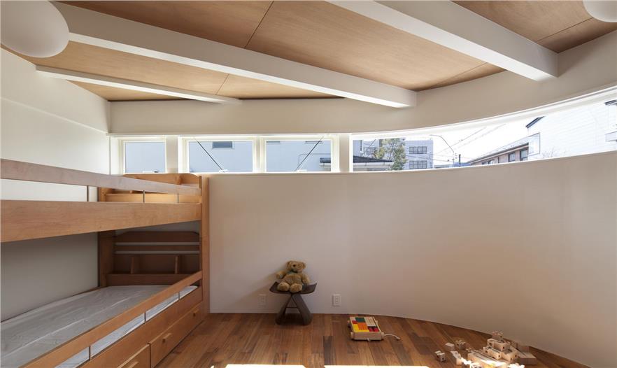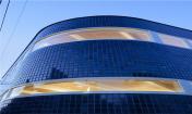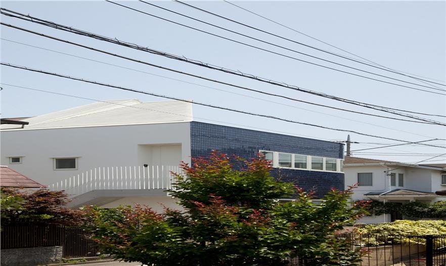 貼瓷磚的外墻面被設(shè)計(jì)成曲面,以突出水平橫向的觀感,并能借助太陽光線的變化帶來不同的印象。