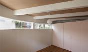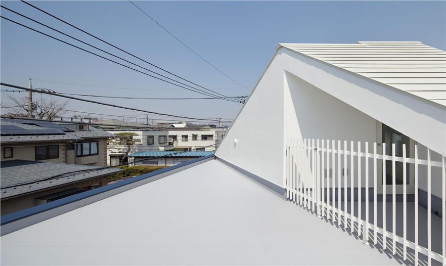 B部分:住宅坡屋頂B部分采用壓花玻璃的小開窗,以阻擋靠在建筑北側(cè)與東側(cè)鄰居的視線,與此同時,確保了必要的采光與通風(fēng)。