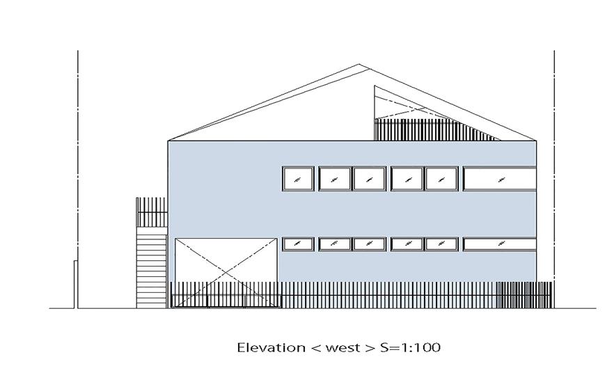 室外墻體采用標(biāo)準(zhǔn)鋼,并用灰漿和彈性涂料飾面,以調(diào)和與鄰里之間的建筑外觀差異。