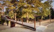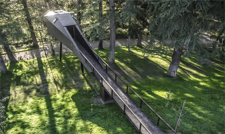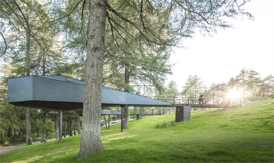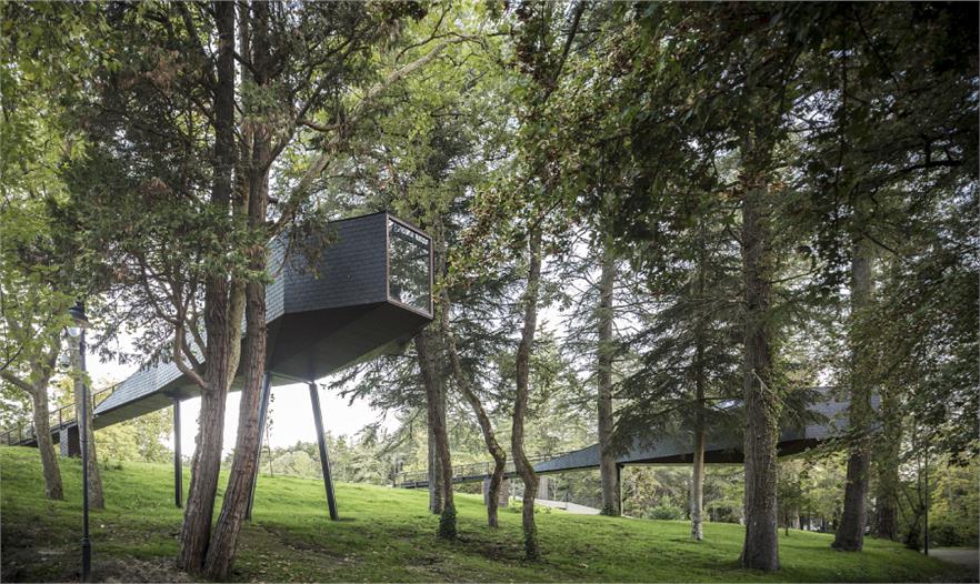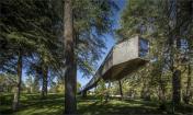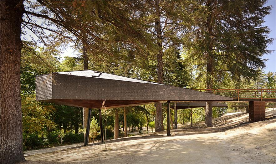 在葡萄牙Pedras Salgadas公園的中心,Rebelo de Andrade Studio 事務所的Luís和Tiago Rebelo de Andrade創(chuàng)造了這些有趣的蛇形樹屋。這些樹屋不是建在一棵高樹的樹枝之中,而是建在樹干之間,下面由木樁支撐。由于天然的石板和木制覆蓋物,讓這個結構真正地融入到了周圍的環(huán)境當中,而且還設置了窗戶來欣賞公園的景觀和繁星。雖然它們的外形奇怪,但實際上樹屋與周圍的自然環(huán)境完全地融合在一起了,而且設計師也考慮了可持續(xù)性發(fā)展和對環(huán)境影響,增加了加強版的絕緣體、低耗能燈光設備以及太陽能電池板。室內(nèi)的裝飾也是最小的,簡潔的樹屋只有一個浴室、一個小廚房、雙人床和沙發(fā)。對游客來說,這是個特殊的體驗活動。
