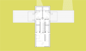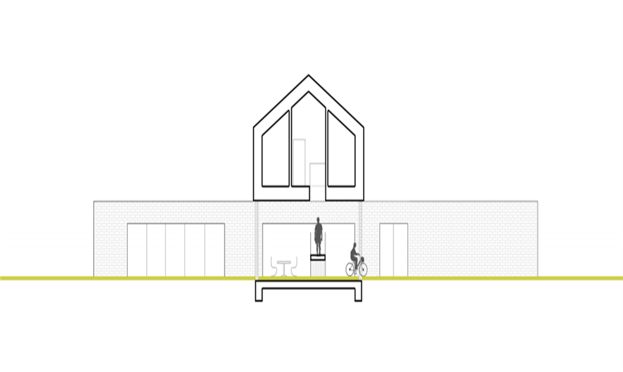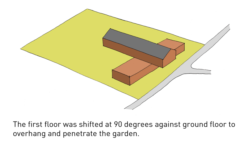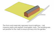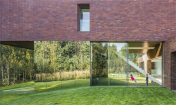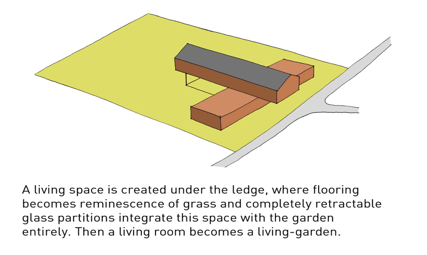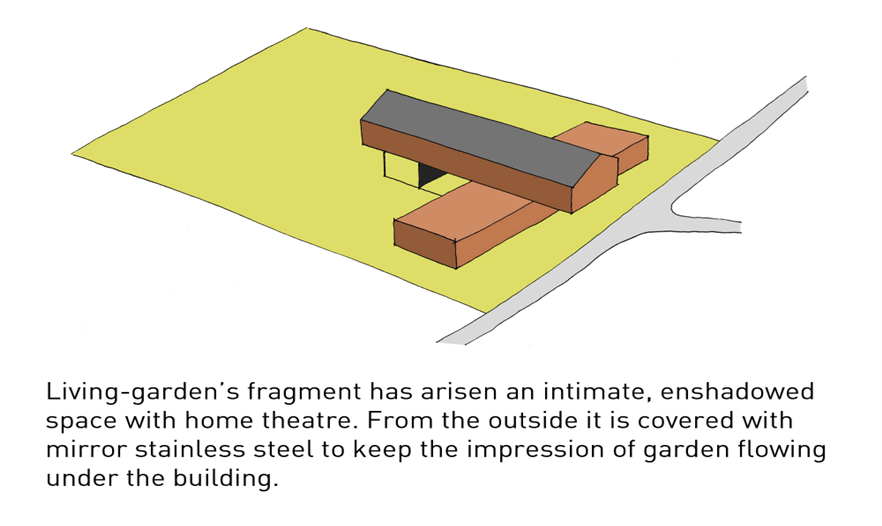 這棟房子建在波蘭卡托維茲。房子的形式和材料表現(xiàn)了當(dāng)?shù)氐膫鹘y(tǒng)——西里西亞的工人居住地特有的紅磚墻和瀝青內(nèi)襯的坡屋頂。首層與道路平行,以將后花園和道路隔離。二層則旋轉(zhuǎn)90度,懸挑橫穿花園。建筑因此而獲得兩邊朝向??拷缆芬贿?,房子是封閉的,難以窺探,提高了住戶的舒適性,保證了最大的私密性。反過來,朝向花園一邊,她全玻璃的立面可以使人眺望周圍環(huán)境。一個(gè)起居花園( living-garden )設(shè)置在二層挑出端部下方。在溫暖的日子里,移開玻璃隔板后,室內(nèi)空間和花園結(jié)合,地板也變成草地。