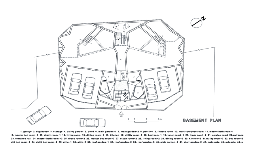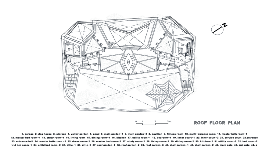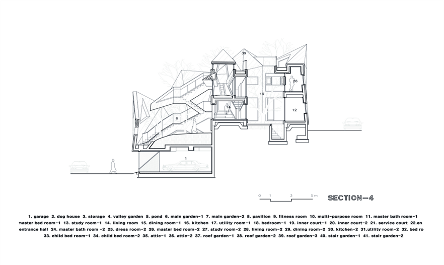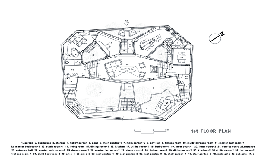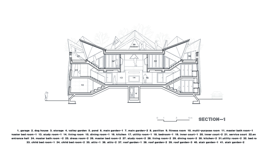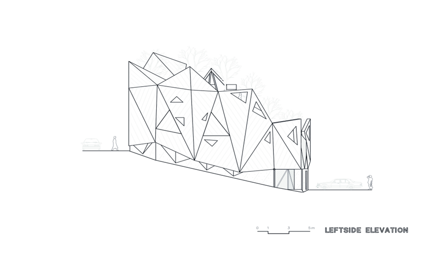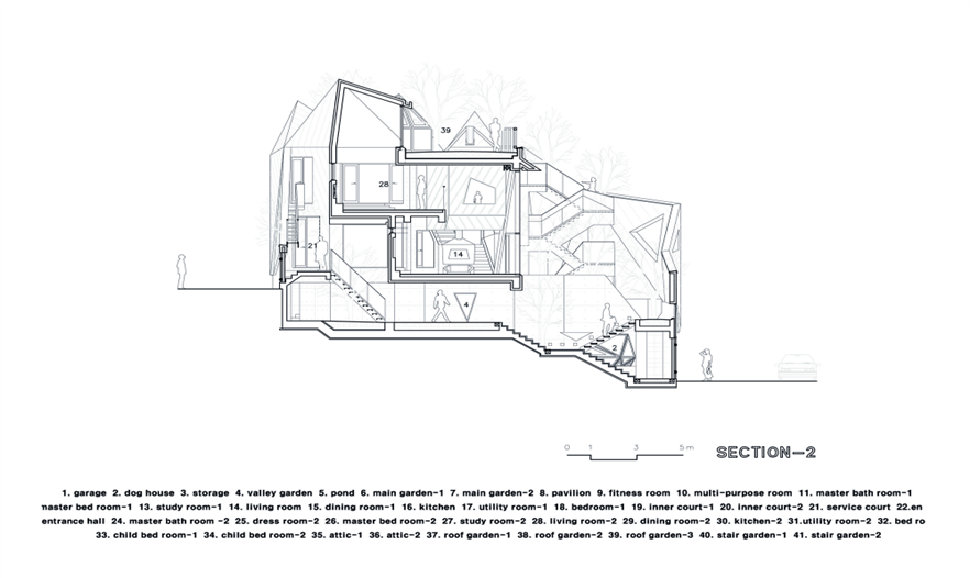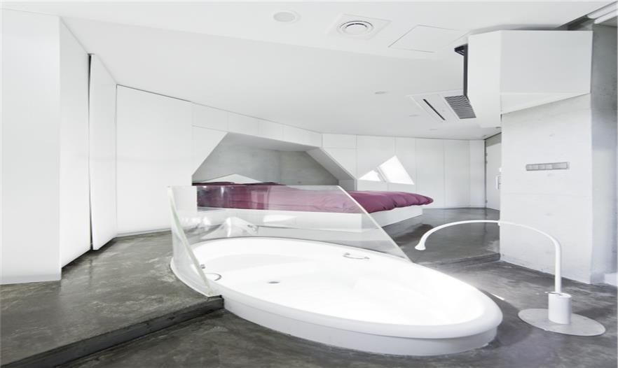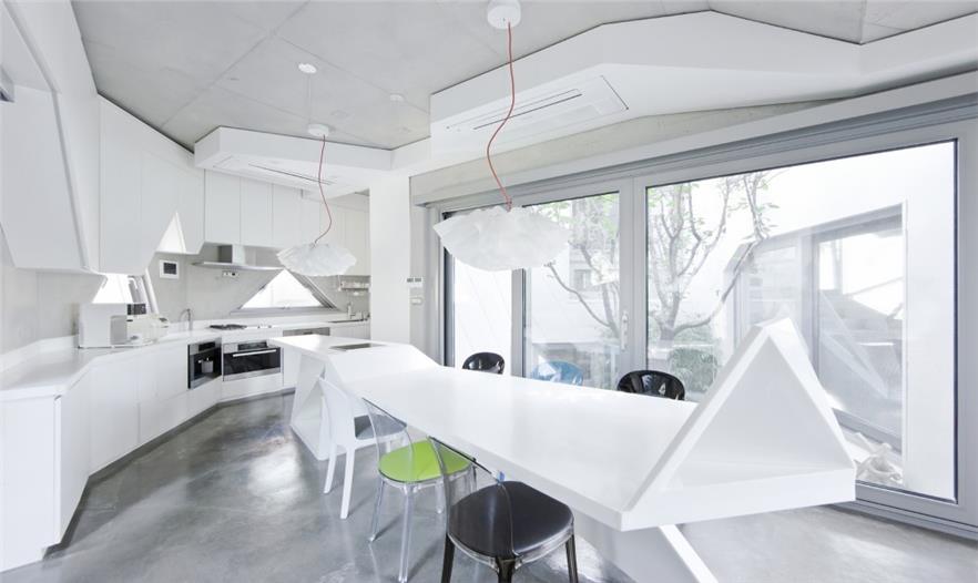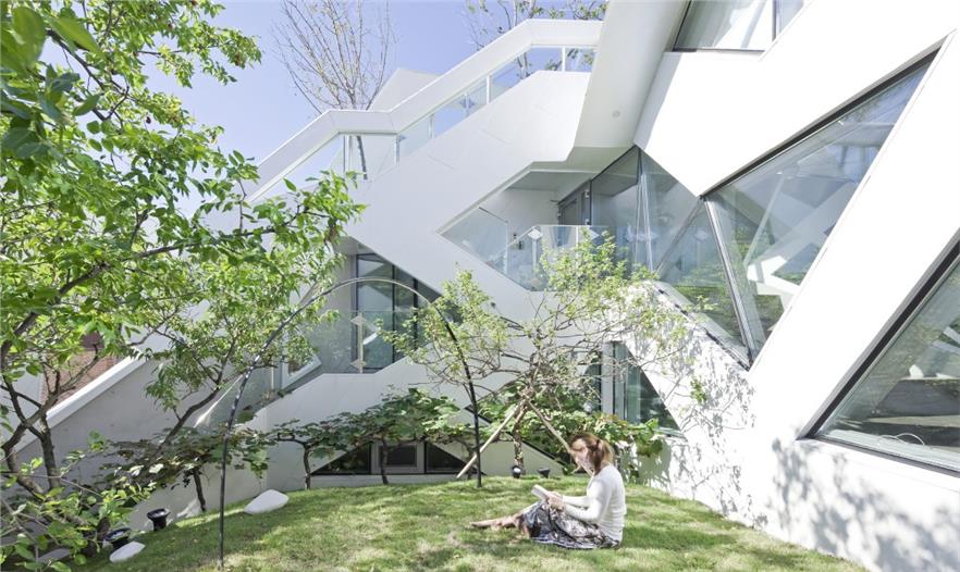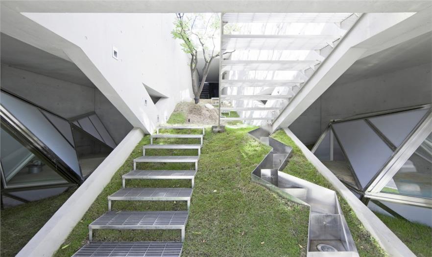 這個區(qū)域位于韓國首爾的中心、城市山北漢山附近。該區(qū)域的地形是不規(guī)則的多面體,也就構(gòu)成了這個房屋的形狀,這樣能夠最大化進(jìn)行土地利用。