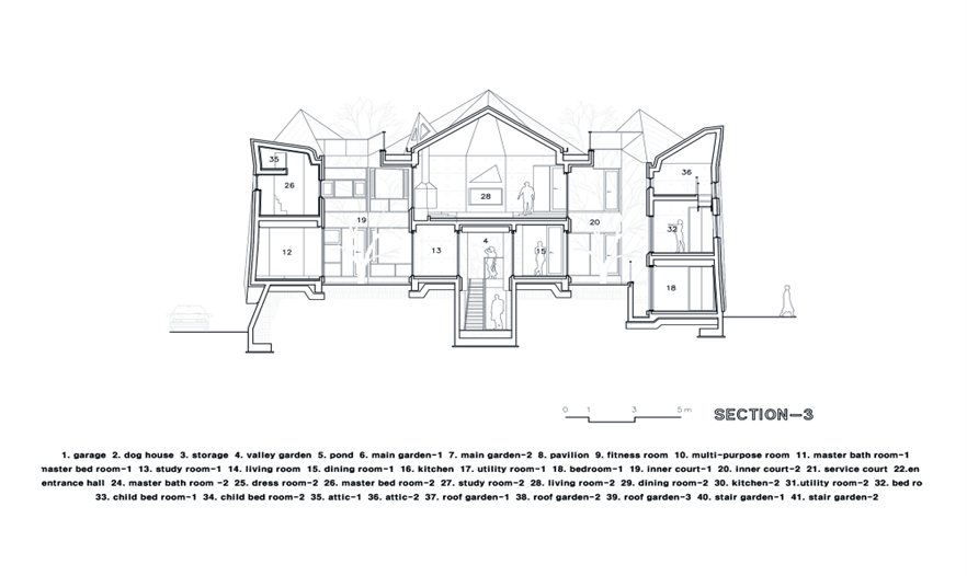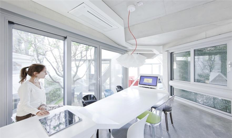 這有多樣的水平花園、前院花園、內(nèi)院花園、階梯花園、瀑布花園、屋頂花園,而且所有的垂直花園彼此之間相通相連。這樣,該事務(wù)所就掩蓋了這座房屋所有的內(nèi)部空間。