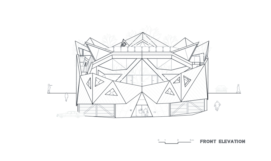 該事務(wù)所在現(xiàn)有區(qū)域的地形上增加了地形設(shè)計,使其形成陡坡,與該區(qū)域的自然條件相一致。
