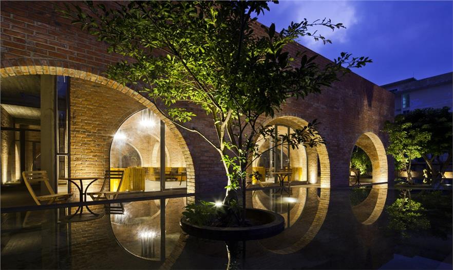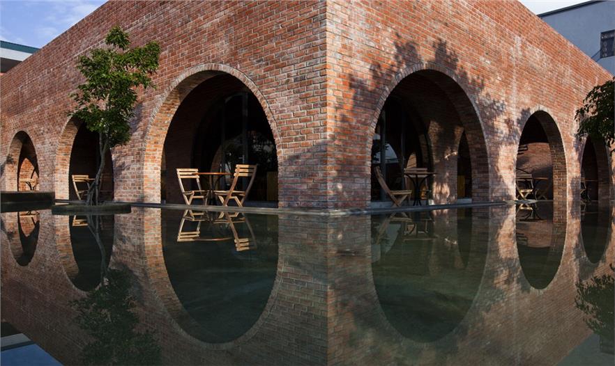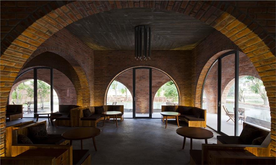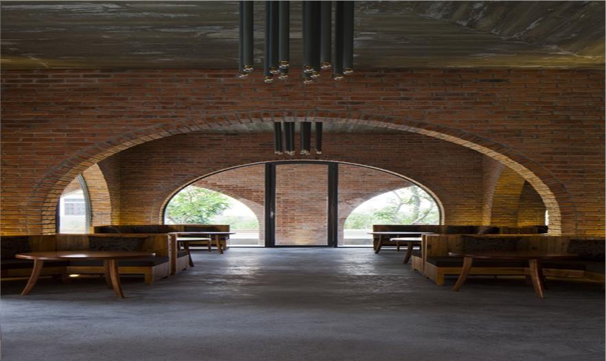 這個咖啡店是由24個磚拱構(gòu)成,在這里使用了一個獨(dú)特的視覺語言,也因此傳達(dá)了設(shè)計師建造這個建筑空間的理念:使用最少的資源獲得最大的效益。