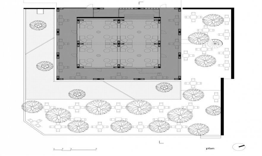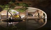 這里有3個主要的空間層,第一個是一個花園空間,種有樹木,還有水流;第二個是與水和花園直接連接的一條走廊。第三個是在中心,在這里顧客能有私密空間,當(dāng)需要時,還能打開空調(diào)。