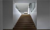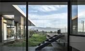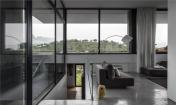 相比之下,室內(nèi)空間周邊采用了玻璃圍合,打開了朝向私密露臺(tái)、庭院和遠(yuǎn)處山脈的開闊視野。住宅上面的大懸挑屋檐起到了遮陽的效果并保證了下面起居空間的私密性,同時(shí)也模糊了室外和室內(nèi)的界限。