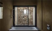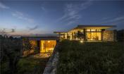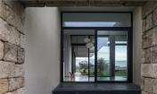兩個(gè)水平層相互擠壓,形成了第三空間—一處室外的庭院,將美景引入到住宅之中。U型的石墻圍繞建筑,形成了一處醒目的外部邊界和一系列圍合的庭院。在底層,庭院形成了一系列的內(nèi)部花園,將充足的自然光線引入浴室和臥室之中。在上層,庭院是一處露天的入口門廊。