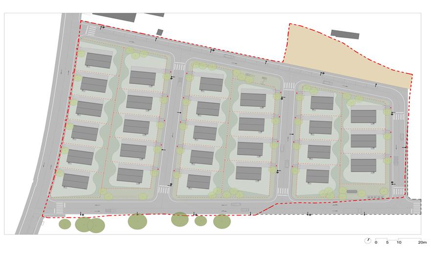 自建筑師的介紹:這個(gè)由27個(gè)獨(dú)棟住宅組成的項(xiàng)目是在價(jià)格控制制度下建造完成的,基本目標(biāo)是優(yōu)化其成本實(shí)效。該設(shè)計(jì)試圖提高使用的多功能性和對(duì)空間特征后續(xù)潛在的改造可能性。