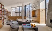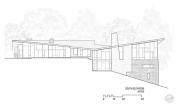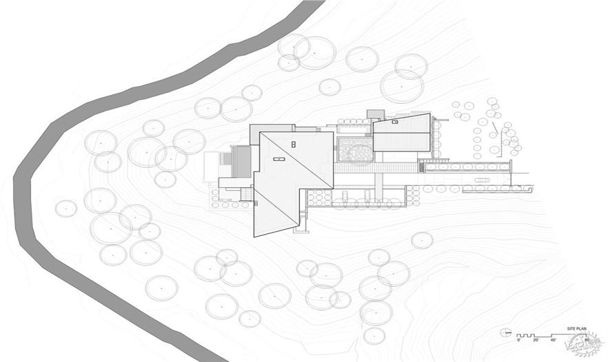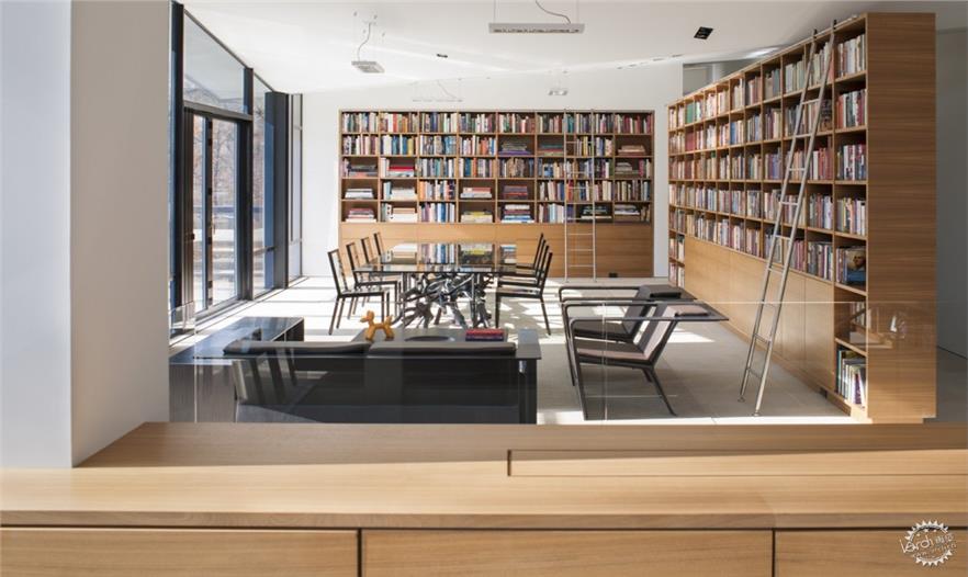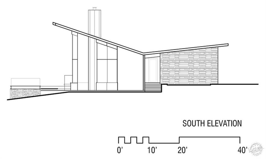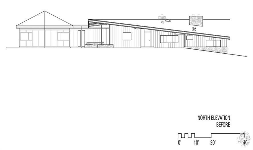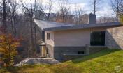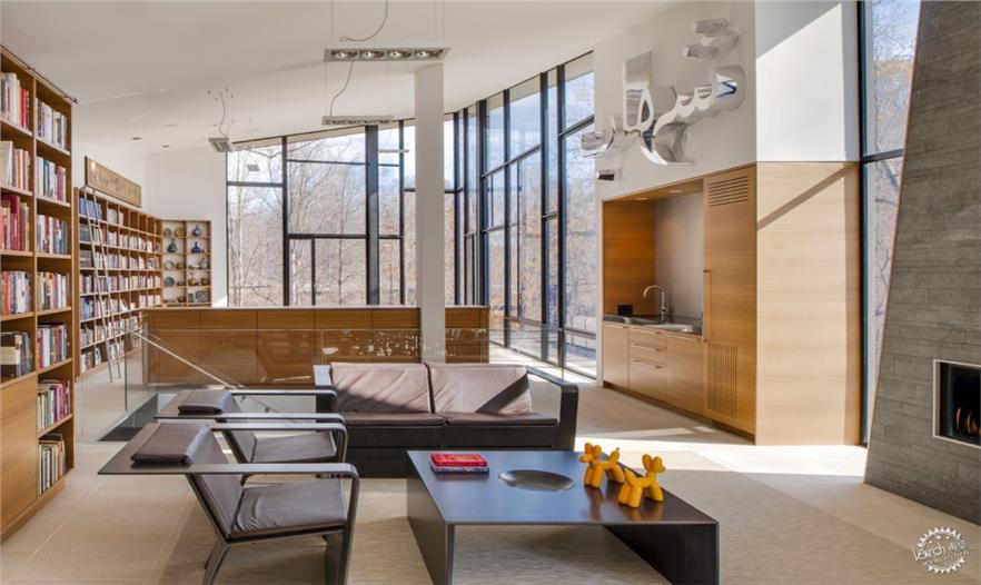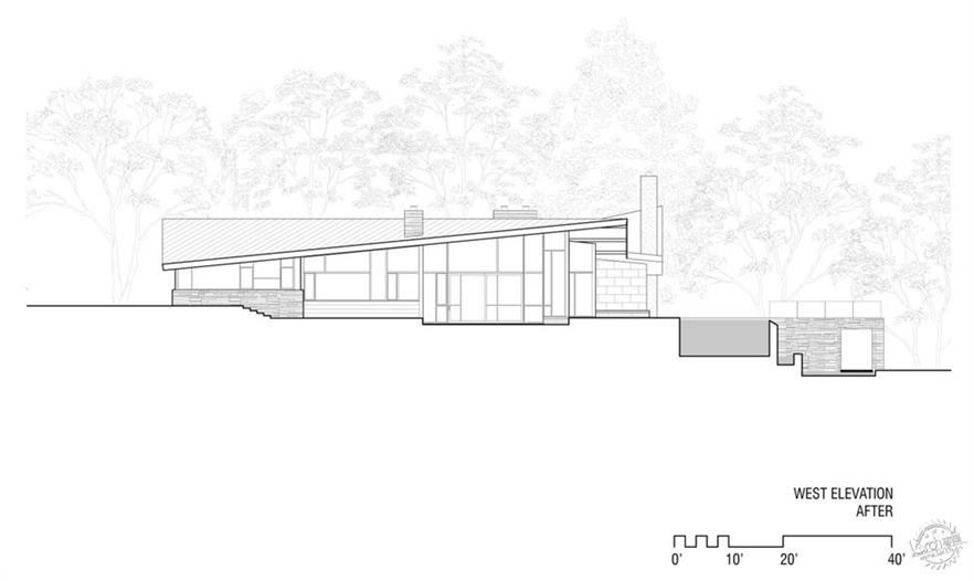 新的附屬建筑包括一個大的圖書館、 五間臥室、 浴室、 健身室、 媒體室、 洗衣房、和其他生活空間。這些新的空間是垂直布置的,由上往下,而不是逐級提升,盡量縮小新項目的外觀尺寸,當進入該建筑,和這里的陡地形相互映襯。延伸的屋頂擴展了現(xiàn)有建筑略帶傾斜的屋頂和在南部的角落采光,讓人享受在木林中樹木繁茂的景觀和感受屋子底部流動的溪流。墻壁和細節(jié)加強主建筑的色調。