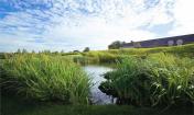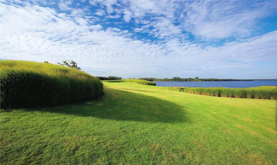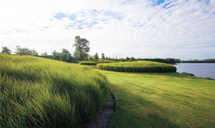 這處美麗的湖畔場地,原址是一座古老的采沙場。業(yè)主希望將場地中的古老農(nóng)舍修葺成一座博物館。因此,設(shè)計師在項(xiàng)目場地上設(shè)計建造了這座半開放式的湖畔公園。由于當(dāng)?shù)赝寥镭汃で液沉看螅O(shè)計師在植物選擇方面進(jìn)行統(tǒng)籌安排,種植了連綿不斷的五節(jié)芒,它們?nèi)缤ɡ税汶S風(fēng)擺動,展現(xiàn)出大自然的美麗畫面。這些五節(jié)芒賦予了場地?zé)o限生機(jī),它們自然地融入到這片環(huán)境中,就像是原產(chǎn)于此。到了冬天,這些五節(jié)芒干枯成米灰色把四周映襯的更加動人。