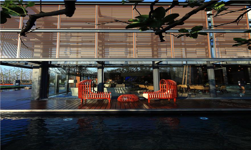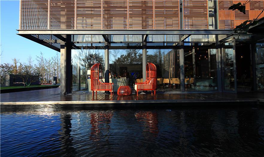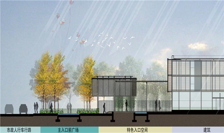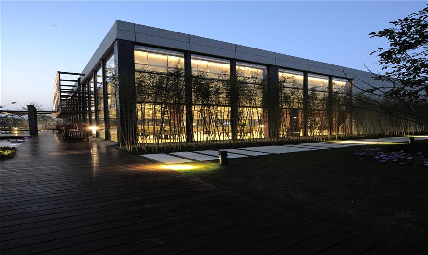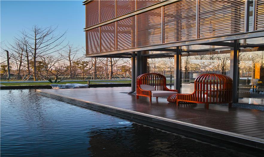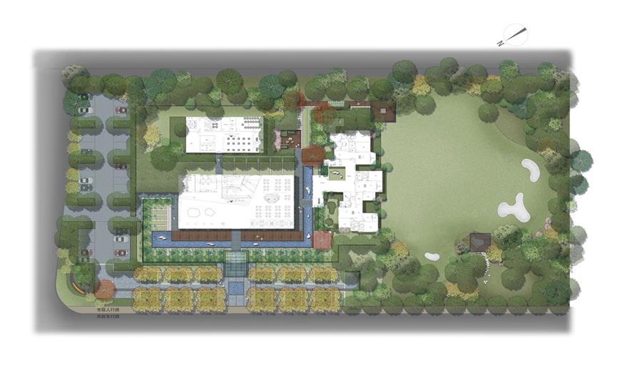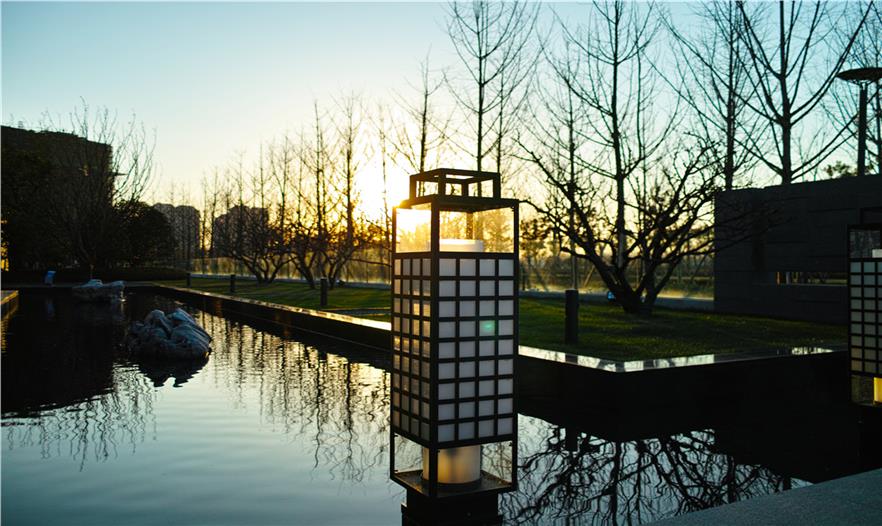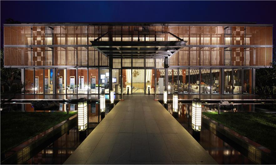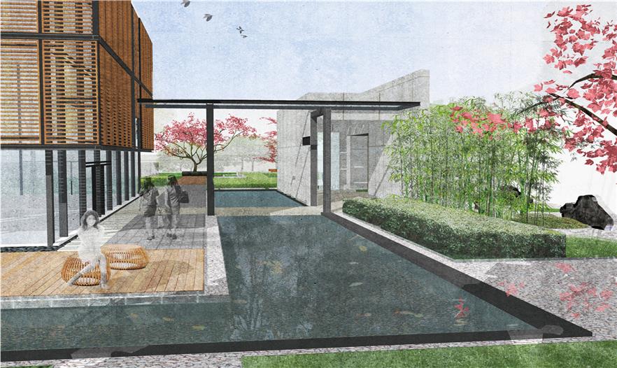 Designers utilize the ginkgo tree court on the frontcourt space to shield the interference from surrounding environment and get access to a static space from a dynamic one. The ginkgo tree courts on both sides highlight the central entrance plaza, and combined with mirror water feature to create a feature paving plaza. The soft furnishings and lighting effect create the ceremonial sense of entrance space. The contrast technique is adopted in the design of exhibition area. The mirror water feature and leisure platform create a big space and contrast with the enclosed small space of entrance porch. The changing of space makes people’s eyes light up and suddenly become clear-minded. The sculpture on water and art seating on platform create a zen atmosphere of the whole space. In terms of the sample area, designers adopt a method that makes the big space bigger and small space smaller to create exquisite small space and echo with the exhibition area. What’s more, designers utilize the karesansui garden to create a zen space and provide a good scenic spot for indoor sight of the sample area. The leisure space is the end of the exhibition area and serves as a breathing space, and connects to the greening big space by interesting roads and trellis platform. As a stopover point for visitors, the exquisite courtyard space includes the following landscape elements: interesting pedestrian space, eye-catching trellis platform, open lawn and forest and grass slope space. As for the junction between frontcourt and sample area, designers try to create an exquisite plant space, together with the transition of road space and landscape trees to create a big space of open lawn and forest and grass slope to contrast with the inner exquisite small space and provide a space for future activities.