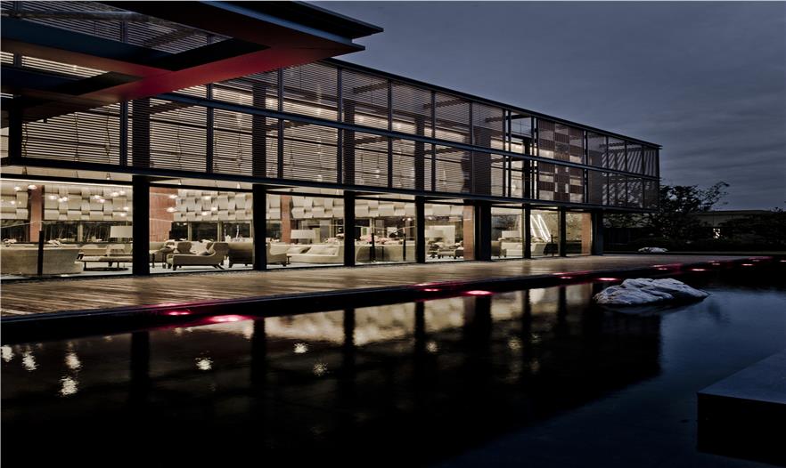 The architecture style of this project is modern simple style with a great sense of times. It includes contract negotiation zone, office space and sample exhibition area. Glass, gray stone material, aluminum alloy and wood grain grille are utilized in architecture to create a transparent and clean particularity.