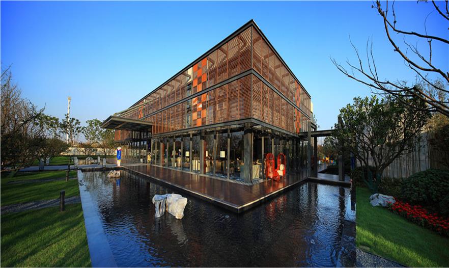 Nanjing is located next to tourism and cultural city of Yangzhou, Wuxi, Suzhou and other typical southern garden cities, which has a superior geographic location. As an important connection hub of Nanjing cross-river development strategy, Jiangxinzhou is planned to be built as an “ecological and tech city, low-carbon and intelligent island” and this project is located in here. Designers introduced this concept and combined with the local culture essence to create a feature landmark landscape for this project.