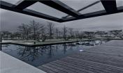 基于建筑設(shè)計和場地情況,設(shè)計師從“嶼”和“雨”獲得靈感。“江心的小島漂浮在無邊無際的水面上,一陣風(fēng)吹來,細(xì)雨打在平靜的水面上泛起一朵朵漣漪。”小島被細(xì)雨和漣漪環(huán)繞,細(xì)雨在此回旋、駐足、泛起漣漪、激起浪花,為平靜的水面增添了幾分色彩,讓現(xiàn)實(shí)生活中的人們體驗(yàn)這種感受,讓無限追求效率和速度的現(xiàn)代城市生活富有禪意,讓一切慢下來,靜下來,是本案設(shè)計師的設(shè)計目標(biāo)。通過借用中國畫的表達(dá)方式,設(shè)計師力求讓生活的意向從三點(diǎn)透視的靜止畫面中走出來:細(xì)雨——與水結(jié)合設(shè)置表達(dá)雨滴之意的禪意雕塑,同時借用南京特產(chǎn)雨花石的文化背景布置景石;島嶼——運(yùn)用水上島嶼比喻被水環(huán)抱的建筑;江面——運(yùn)用景觀水面環(huán)繞建筑,打造禪意空間。