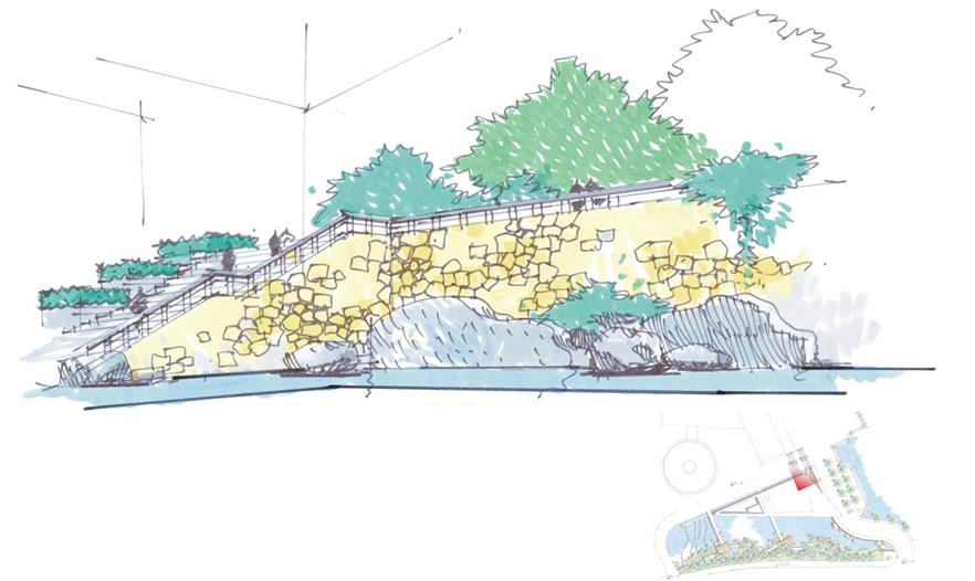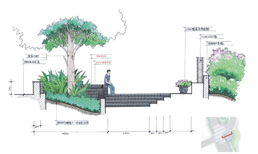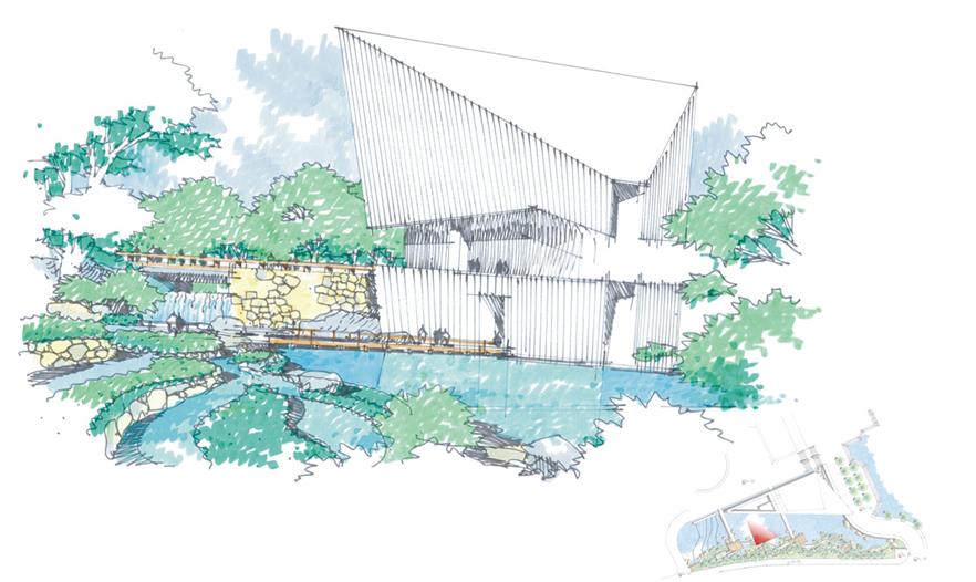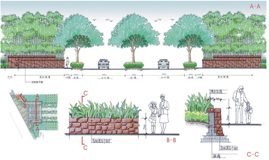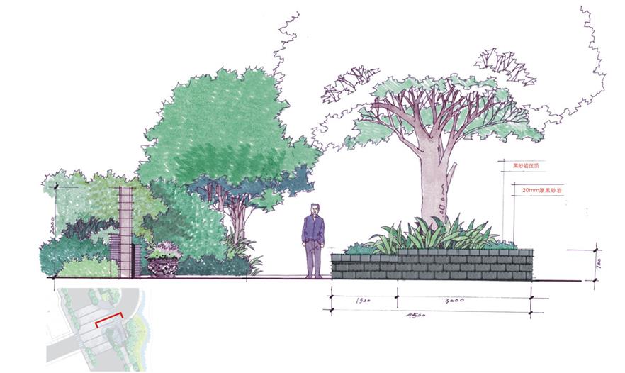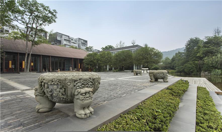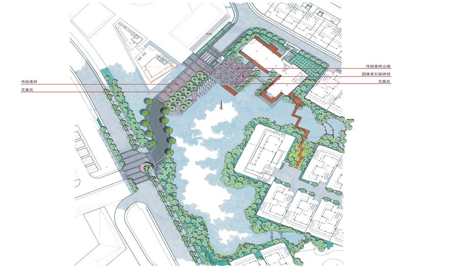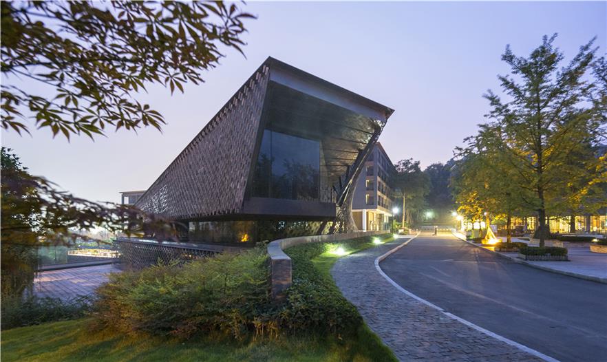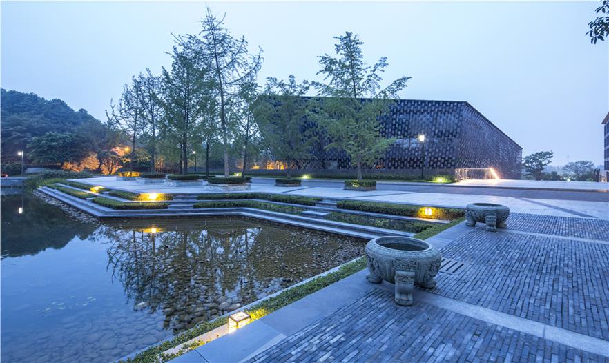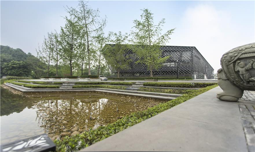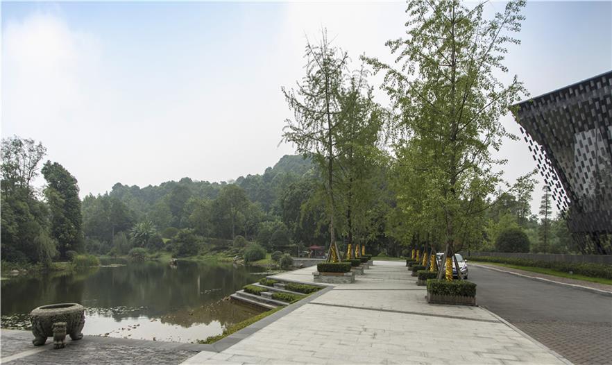The entrance zone of the landscape design is the introductory landscape zone, which a strong sense of rhythm that employs a large quantity of bamboos. It directly expresses the cultural atmosphere pursued by the landscape and enhances the noble quality of the project, through the introduction of these indigenous and traditional species.