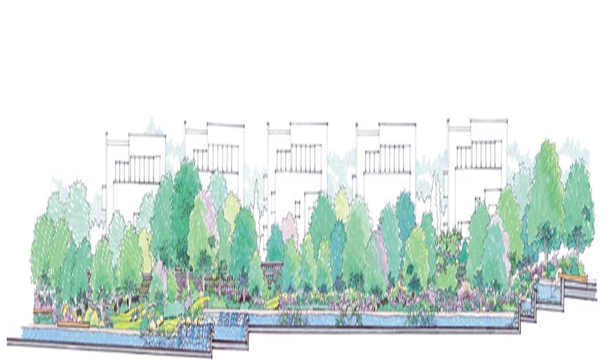 The beautiful waterscape and the secluded forest feeling are the essence of the landscape, which represents the high quality of the project.