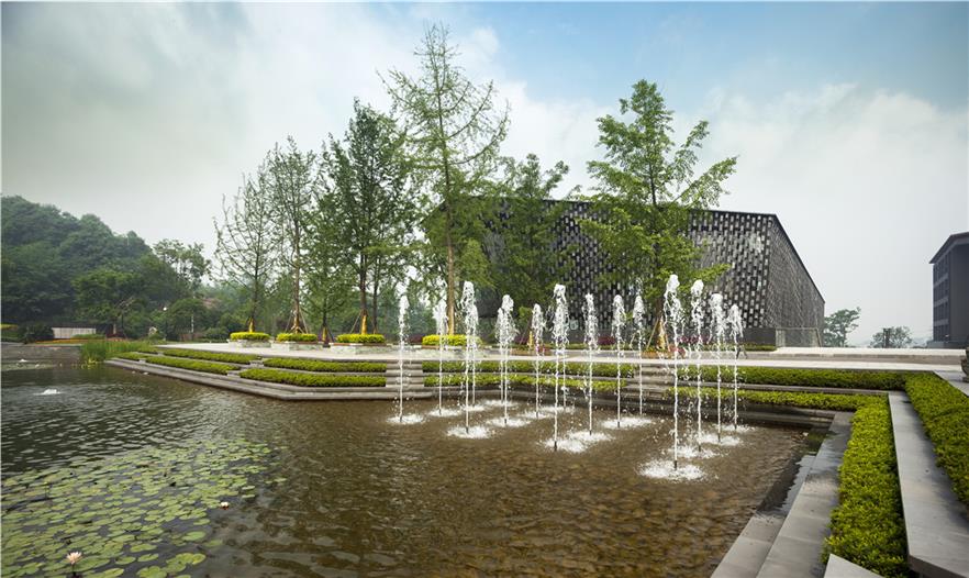 The design of the waterscapes forms the core of the entire landscape, which gives the garden a sense of flexibility and wisdom. The lage water surfaces and large plazas display the disposition and elegance of the landscape layout with good order and harmony. It is characteristic of the rich flavor of Chinese gardens, with surrounding water and winding bridges that embodies the transmission of history.