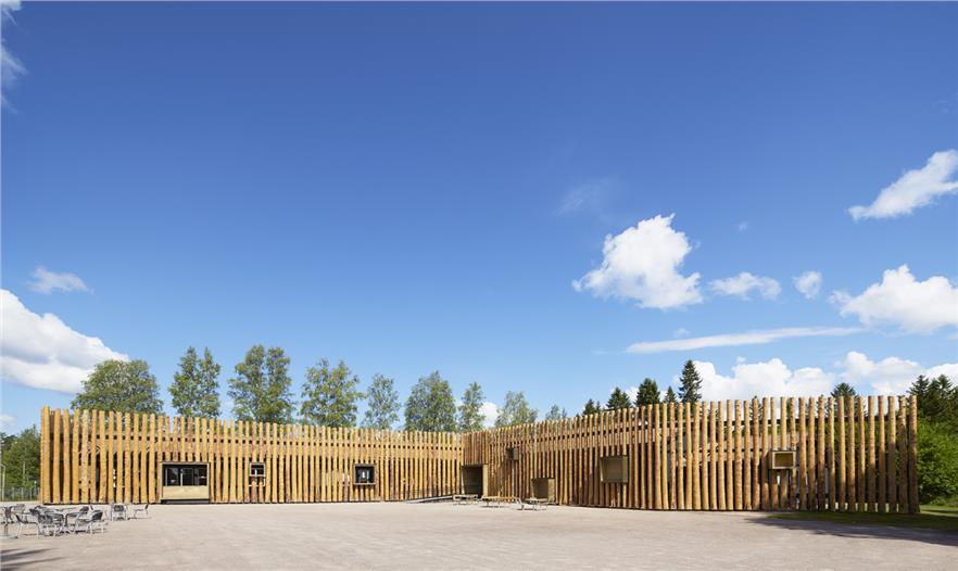 Bornstein Lyckefors建筑設(shè)計工作室最近為瑞典圖什比一座位于森林里的學(xué)校設(shè)計了一座博物館及文化中心。這座博物館很大程度上歌頌和紀(jì)念了十七世紀(jì)時在這座森林里進(jìn)行傳統(tǒng)耕作的芬蘭人。這座建筑中,還舉辦了一場專門展示芬蘭人傳統(tǒng)建筑技藝及木工技術(shù)的展覽,還在其中向參觀者講述了芬蘭歷史、芬蘭的民俗傳統(tǒng)及民間傳統(tǒng)。 在設(shè)計中,建筑師在外立面的材料選擇上也特別選擇了當(dāng)?shù)氐膫鹘y(tǒng)的木材。Bornstein Lyckefors建筑設(shè)計事務(wù)所的Andreas Lyckefors說道,“我們希望能建造出能和芬蘭可以進(jìn)行直接‘交流’的建筑,就像直接用建筑進(jìn)行表達(dá)出內(nèi)涵一樣。”為了實現(xiàn)這一設(shè)計目標(biāo),原先的學(xué)校建筑被漆成了全黑色,外立面則完全的采用木材排列的方式進(jìn)行裝點。該建筑的外立面一“打開”,入口便呈現(xiàn)在人們眼前,而這樣的外立面也有利于采光。 而這個巨大的“木盒子”中,擺放了大量的長椅、引導(dǎo)標(biāo)識及數(shù)不盡的藝術(shù)品。