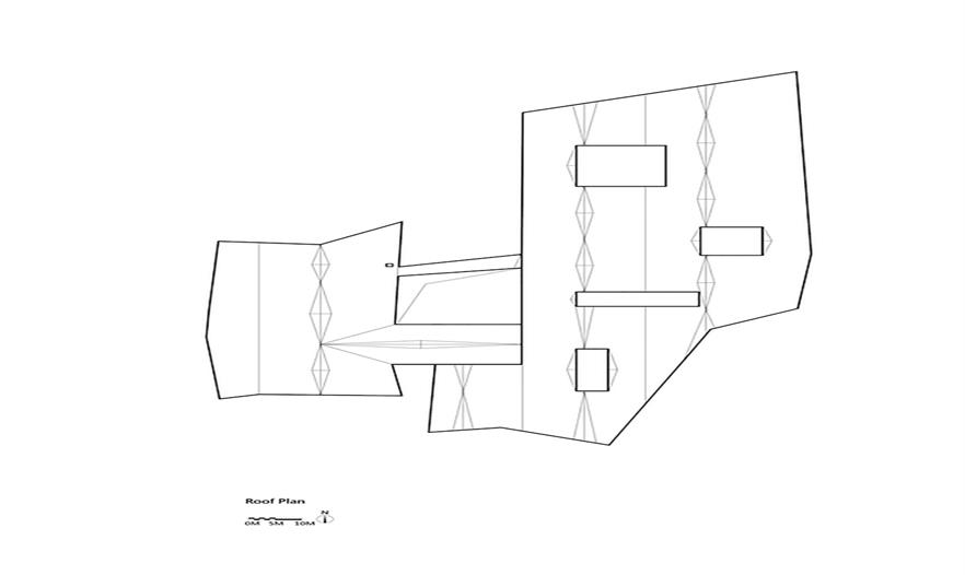 觀眾將被帶至一個較高的平臺,并且從這個特殊設計的空間中開始整個展館的參觀的路線。整個垂直的廣場從外觀上看起來就像倒置的臺階這也使得其巨大的屋頂架構產生了一種“反重力”的感覺,是參觀者頗為敬畏。