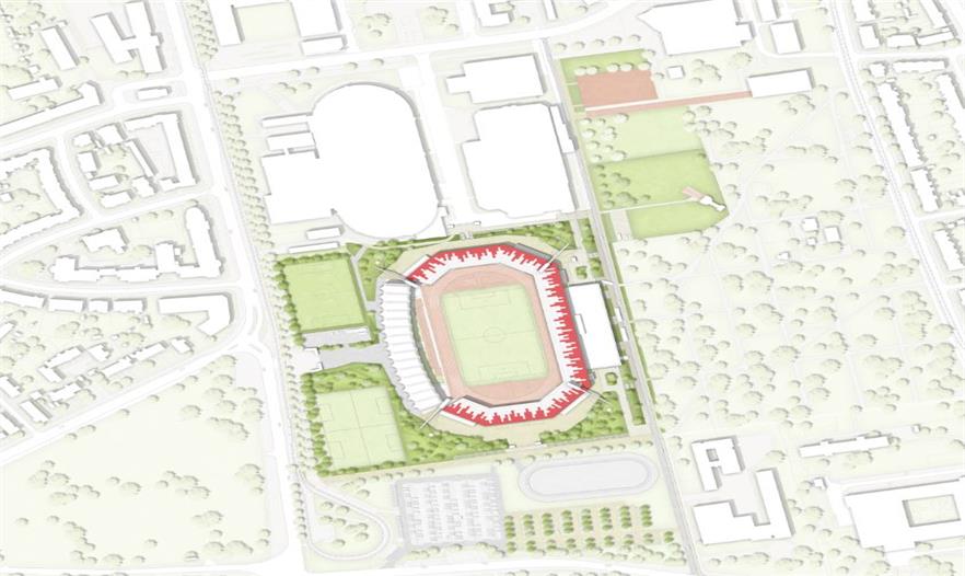 HPP項目合伙人,設(shè)計總監(jiān) Antonino Vultaggio 先生對該項目的規(guī)劃評價說到:“ 將體育場設(shè)置成景觀退臺的形式可以降低體育場的視覺高度, 同時強(qiáng)調(diào)體育場的橫向形體。主場館是多功能集中的場所,并與埃爾弗特南方公園連接到一起。”