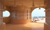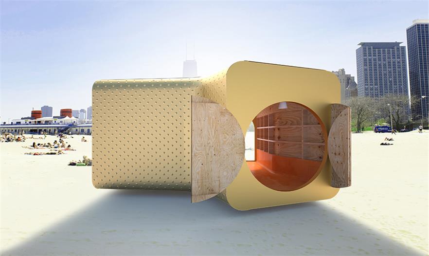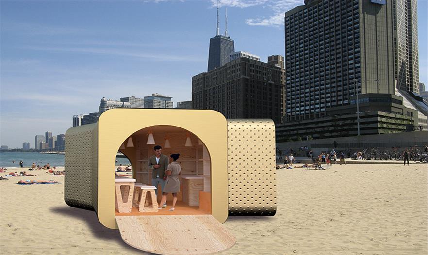 米蘭建筑事務(wù)所argot ou la maison mobile(AOUMM)參加了未指定概念的芝加哥建筑雙年展湖濱涼亭設(shè)計(jì)競(jìng)賽。對(duì)于該項(xiàng)目而言,耐久性、工業(yè)化和靈活性都是關(guān)注的焦點(diǎn),希望在今年晚些時(shí)候能夠在芝加哥湖濱的千禧年公園找到一處合適的地方。該設(shè)計(jì)結(jié)合了工業(yè)化部件,包含定制化的元素曲梁和鋁板外層,讓它與傳統(tǒng)的湖濱涼亭形象區(qū)分開來。由膠合層積木結(jié)合各種尺寸曲梁、填充屋頂和橡膠地板構(gòu)成的結(jié)構(gòu)核心為這座涼亭的起點(diǎn)。由中心點(diǎn)擠壓而出的三個(gè)錯(cuò)開的(telescoped)元素,提供了朝向上的自由。為了提升結(jié)構(gòu)的特點(diǎn),選用了帶有浮點(diǎn)的鋁板。在該項(xiàng)目的第一階段,和其他的方案一樣,它會(huì)在雙年展上起到信息亭的功能。得益于三個(gè)部分可以進(jìn)行分解,該建筑可以實(shí)現(xiàn)快速建造和干式裝配,并且一輛卡車就可以進(jìn)行運(yùn)輸。在內(nèi)部家具和電氣基礎(chǔ)設(shè)施非常有限,但這也有效地降低了涼亭的重量和維護(hù)需求。三個(gè)門提供了進(jìn)入內(nèi)部的通道,創(chuàng)造了多功能的空間可以適應(yīng)不同的特定布局要求。當(dāng)不再作為信息亭之后,它也可以轉(zhuǎn)變成:服裝零售、食物貨攤、展覽空間、微型書店和租賃攤位(自行車、溜冰鞋等)。
