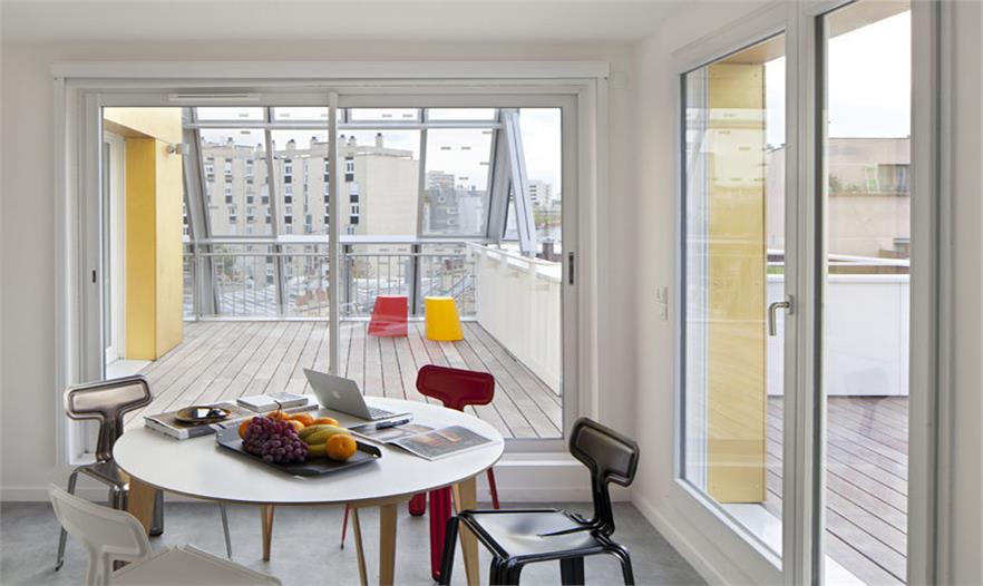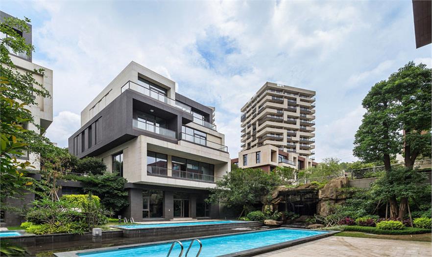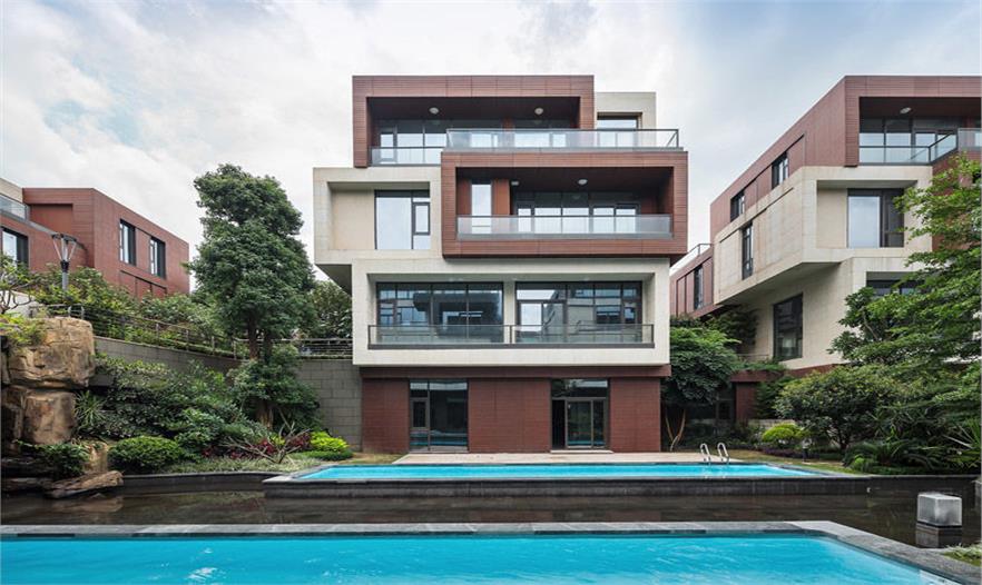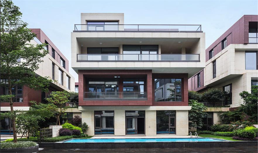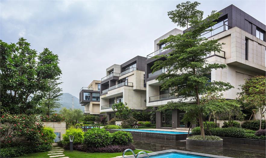 NEXT 建筑事務(wù)所用有棱紋的熏燒陶土和光滑的花崗巖筑起了一座高檔住宅小區(qū),設(shè)計的挑戰(zhàn)在于,如何才能最大限度地讓居住者享受到周邊山脈與河流的自然景致。 整個住宅區(qū)包括兩幢高大的塔樓以及一系列三四層高的不規(guī)則形狀低矮聯(lián)排住宅。低矮的聯(lián)排住宅因其不規(guī)則形狀,使得每一樁小樓的外部都擁有一個私人小露臺,這種借用懸臂樓板做露臺的方式,此前在奧雷·舍人(Ole Scheeren)建筑事務(wù)所在新加坡建的住宅小區(qū)以及法國建筑事務(wù)所 RH+ 造的巴黎混凝土住宅樓中都有體現(xiàn)。