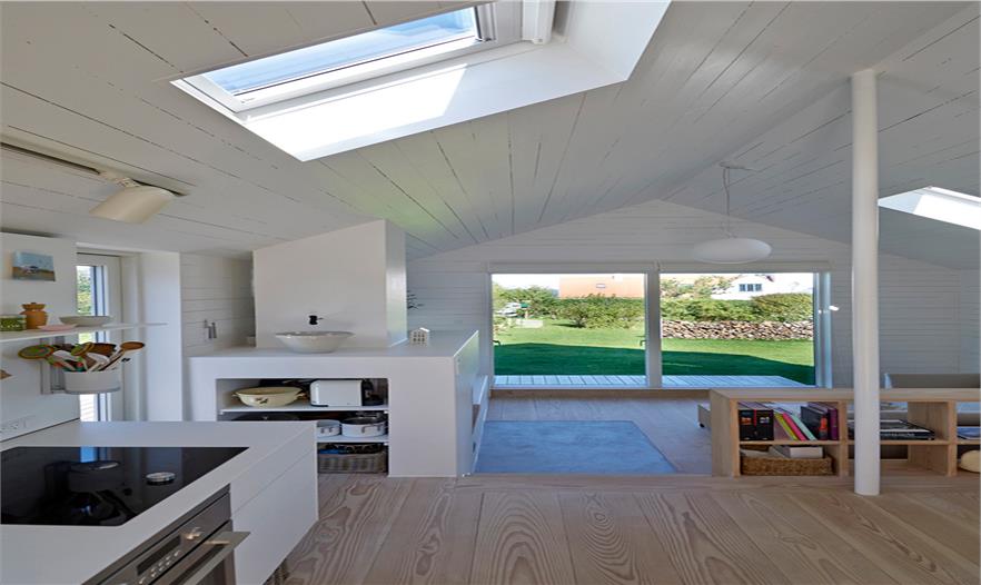 該區(qū)域位于丹麥西蘭島(Sjælland)北端漂亮卻多風的夏季度假村里。整個房屋分成5個獨立的空間,分別是廚房、父母的房間、孩子的房間、會客廳以及公用設(shè)施空間。