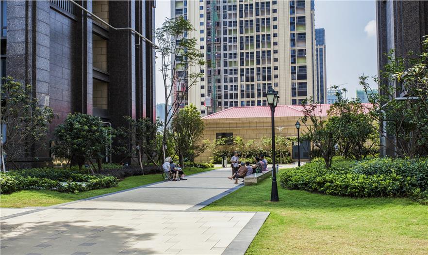 SED considers about the resting function for the commercial street around. Combined with the Art-deco elements, the delicate flower pots, the interesting paving and the advertisement signboard, SED created a pleasant European commercial square. The whole commercial street’s landscape design also includes the outside business place, the business promotion and the business exhibition, etc. The space covers the key points of shopping mall main entrance, the residential main entrance and forms an atmosphere of flexibility and freedom.