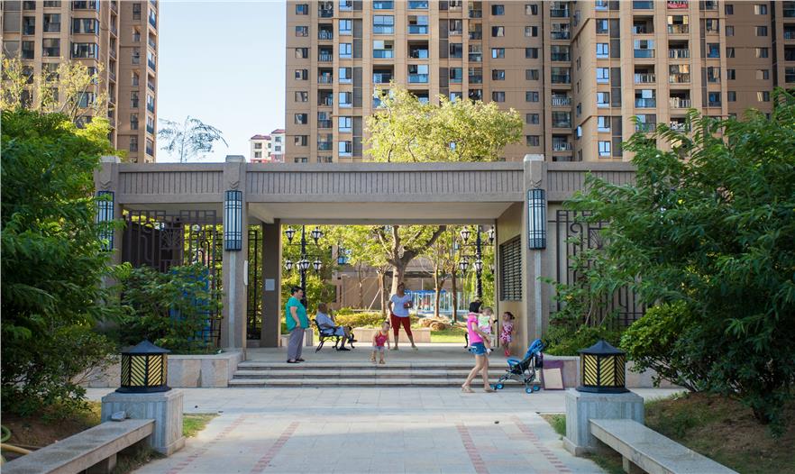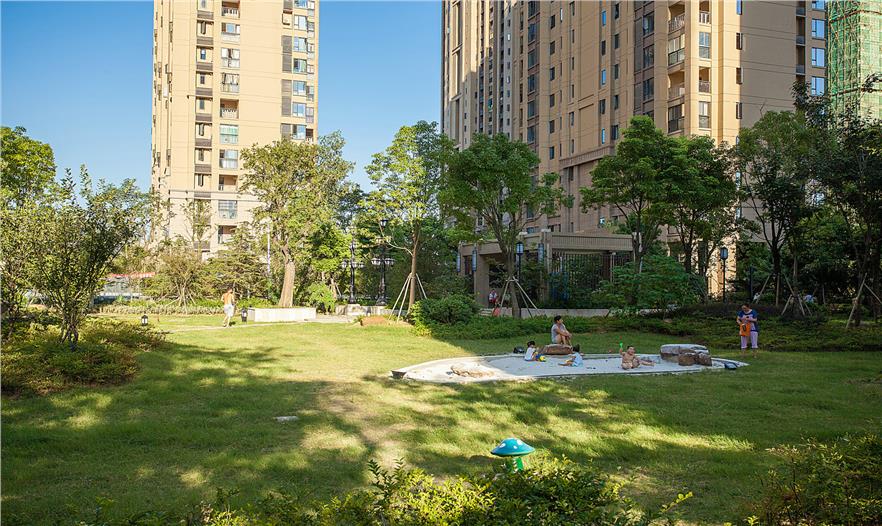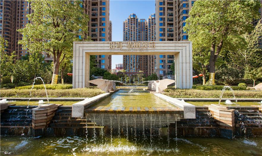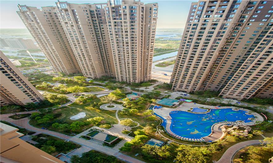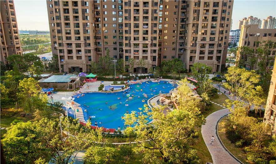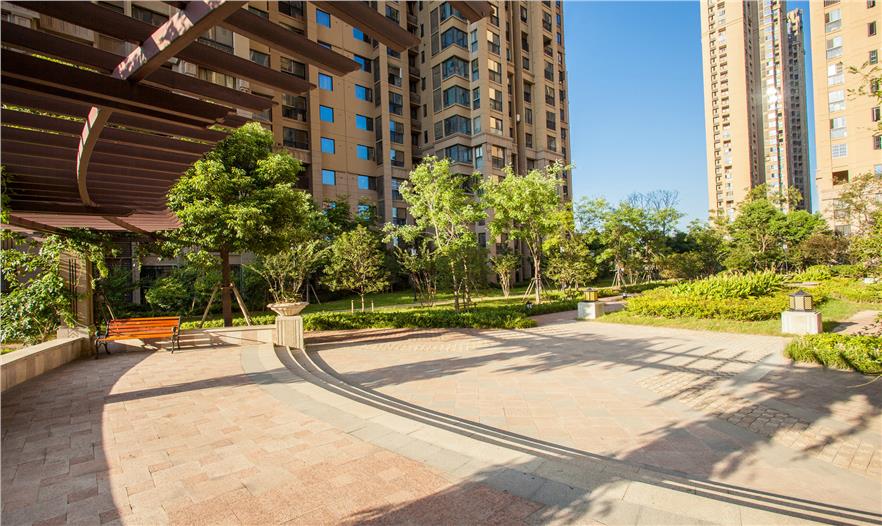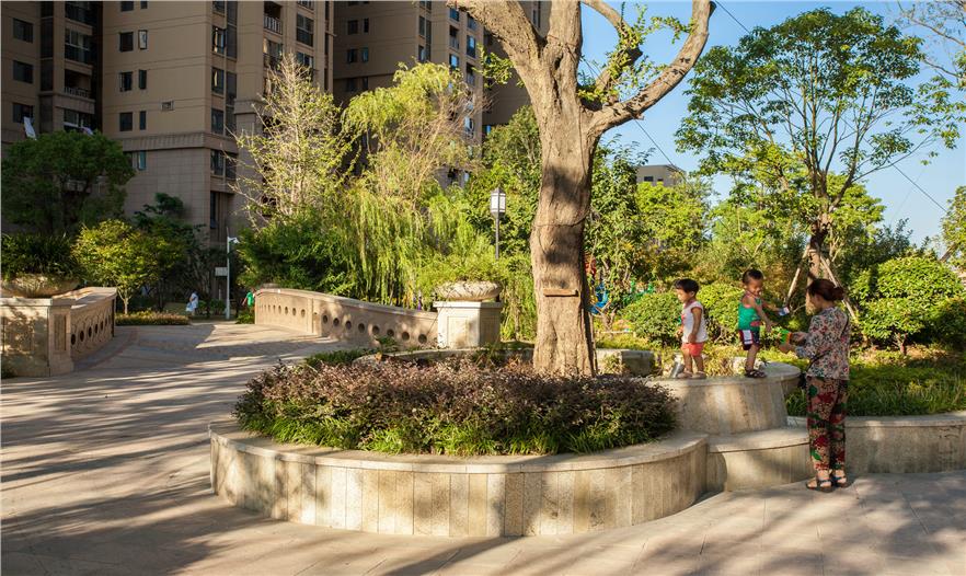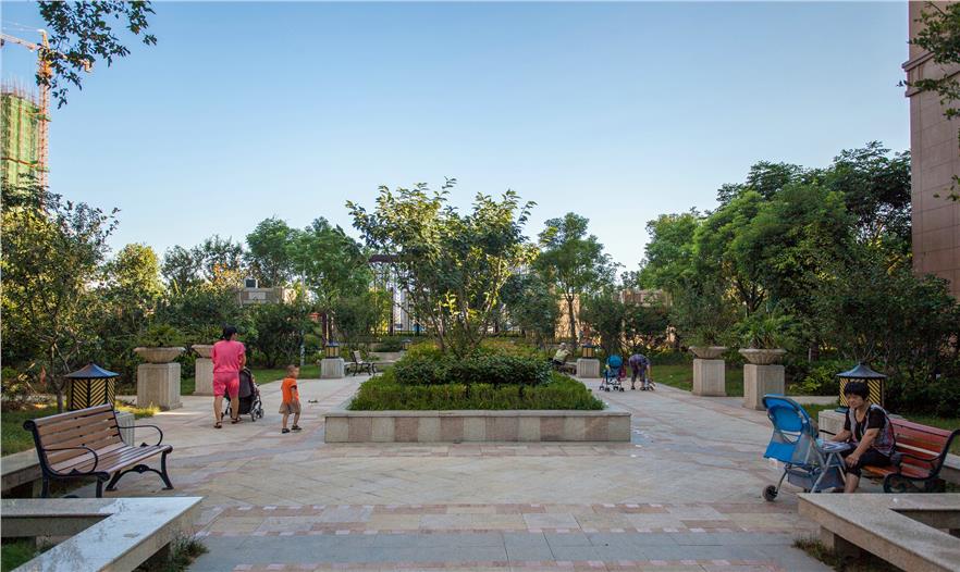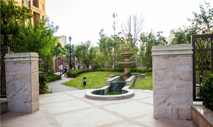 The layout used the style of butterfly, the symmetrical axis space landscape layout has provided the flexible and depth feeling for the residences and showed the noble quality of it. The borderless swimming pool not only provides an opportunity for people to feel cool, but also gives experience of vacationing. The sunk-in grass land and green island forms a grass river and connects all the parts of sculpture, bridge and swimming pool.