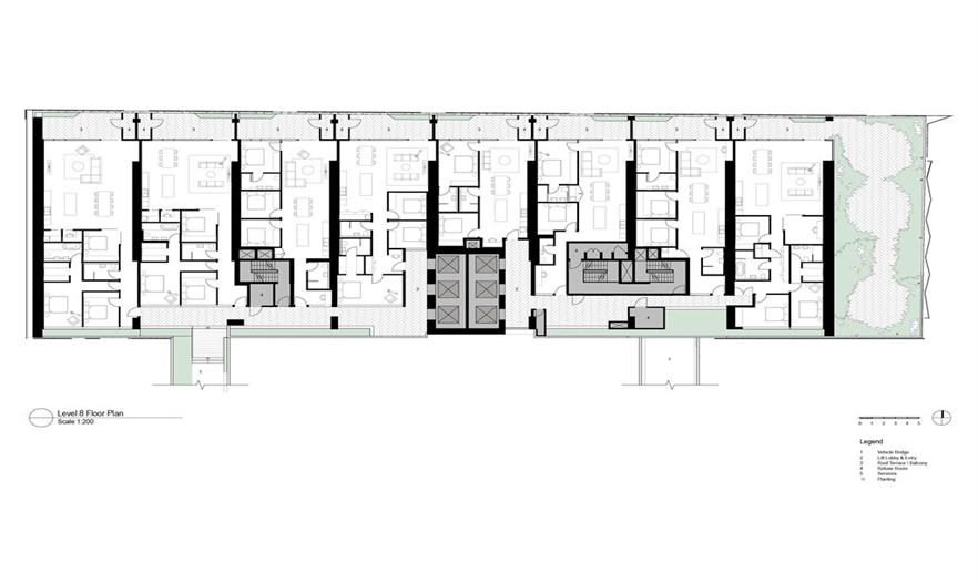 通過建立北向的陽臺和帶有植被的圓形邊緣,QV8公寓將會一直呈現(xiàn)出欣欣向榮的景象,在硬質(zhì)邊緣的街景上增添繁茂的景象。