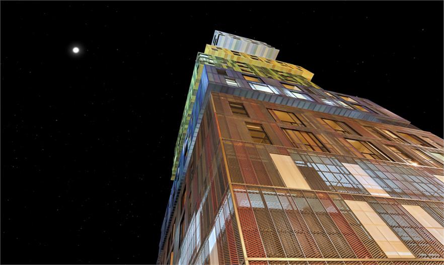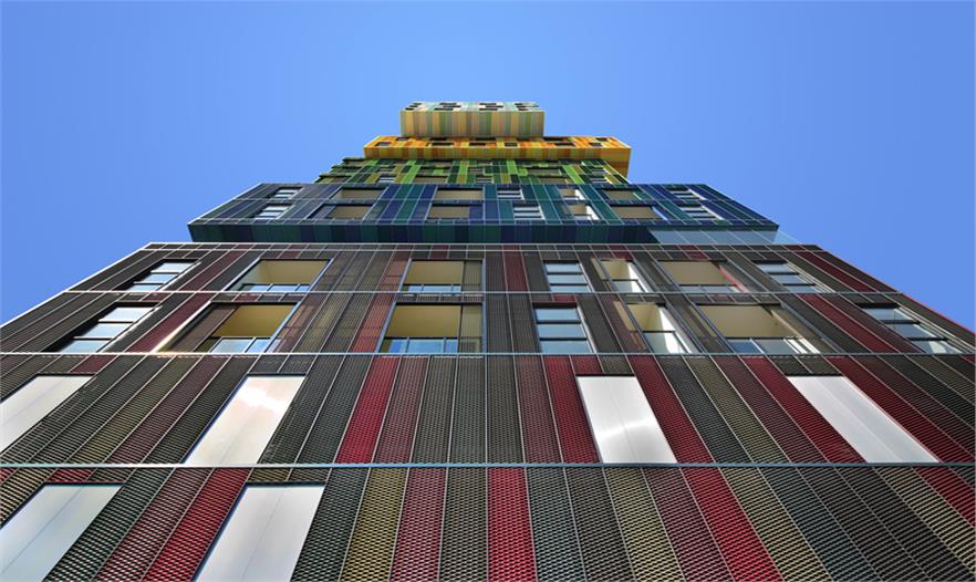 該建筑的立面設(shè)計(jì)是由建筑師和墨爾本藝術(shù)家馬修•約翰斯頓合作完成,建筑表面覆有多孔的金絲網(wǎng),有至少40種不同的色調(diào)。