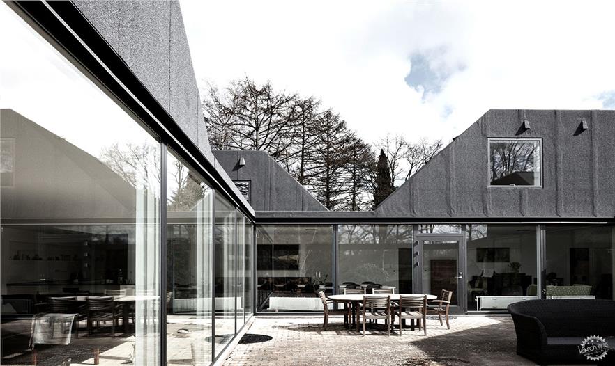 屋頂住宅項目是一個徹底改變現(xiàn)有別墅,置身于一片美麗的樹林之中,它位于丹麥菲登斯堡宮。