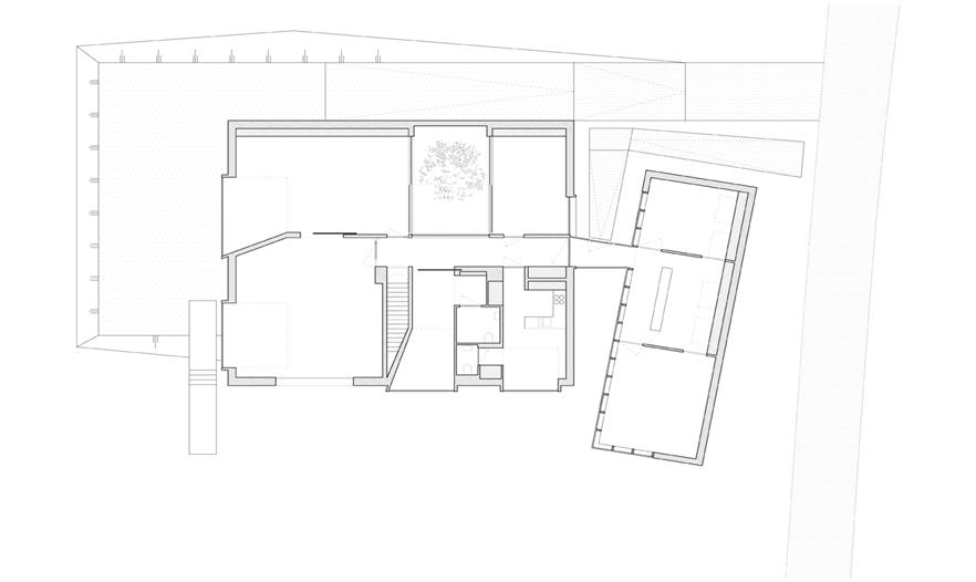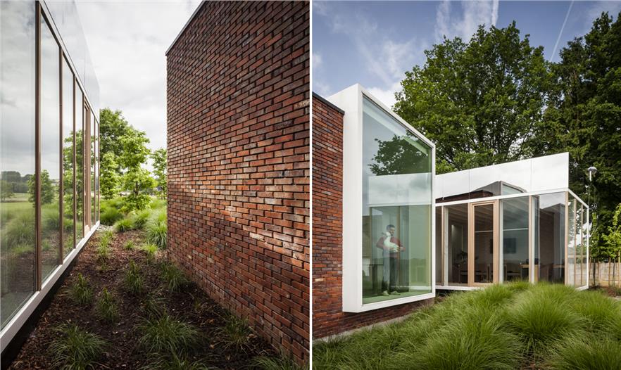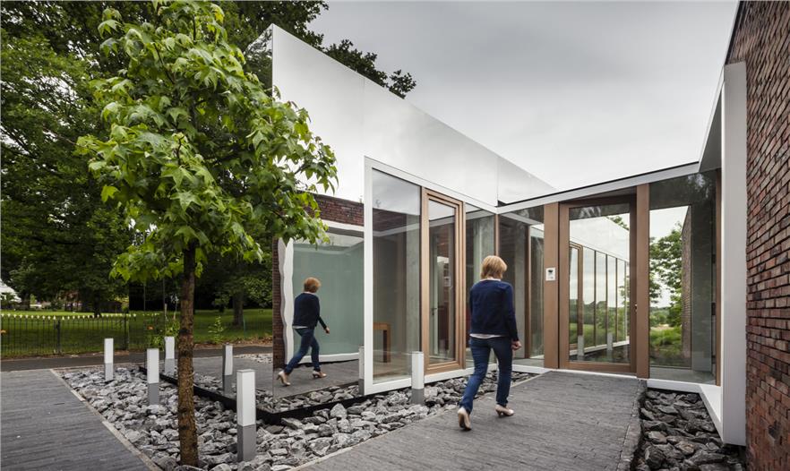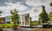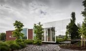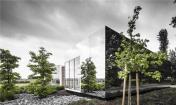 因此,對(duì)于這里的改建是一個(gè)巨大的考研。構(gòu)思出來(lái)的設(shè)計(jì)不能是一種延續(xù)或復(fù)制,所以需要采用一個(gè)完全不同的方法。在六個(gè)月的設(shè)計(jì)期間,一個(gè)抽象的鏡盒加上黑色底座及玫瑰,沿著街道的擺放,成了最后的設(shè)計(jì)。這樣的設(shè)計(jì)取代前者之間的建筑的入口通道。擴(kuò)展不僅是建筑本體上,而且還體現(xiàn)在視覺(jué)上與現(xiàn)有的辦公室的關(guān)聯(lián)。用白線縫邊的窗戶,就像處在原來(lái)的建筑一般,但卻創(chuàng)建了一種截然不同主要設(shè)計(jì)概念。該建筑的本質(zhì)簡(jiǎn)單而重復(fù),采用了俄勒岡州松與固體磚作主要材料。但強(qiáng)大的反射表面搶走了所有材料的眼球。精致的細(xì)節(jié)反射了周圍的寧?kù)o,同時(shí)融入周圍的景觀。鏡像也同時(shí)襯出了周圍的樹(shù)木和斜坡。不銹鋼包覆的外立面就如同液體一般,相當(dāng)靈動(dòng)。這種疏遠(yuǎn)的效應(yīng)還確保了原本建筑將得以保全。