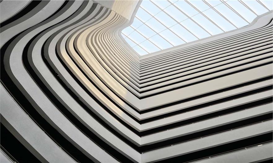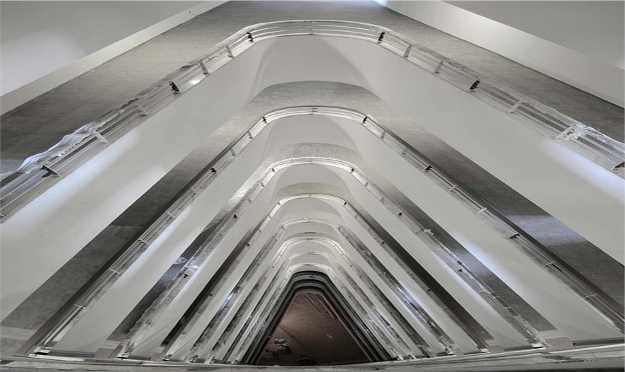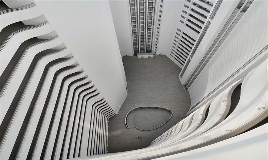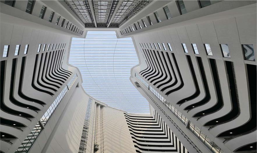 較大的天井是該建筑群主要的公共空間,設(shè)有觀光電梯,未來(lái)這個(gè)空間還會(huì)增設(shè)商店、咖啡店和藝術(shù)品。白天,這個(gè)空間是燈光和陰影變化秀的背景;晚上,每個(gè)樓層都會(huì)發(fā)光、明亮。