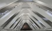 該建筑群室內(nèi)的布局圍繞2個(gè)天井分布。較大的一個(gè)位于下滑結(jié)構(gòu)的內(nèi)部——它有一個(gè)巧妙的尖角形狀,覆蓋著四氟乙烯;較小的天井是三角形結(jié)構(gòu),位于該“帆船”的船頭。
