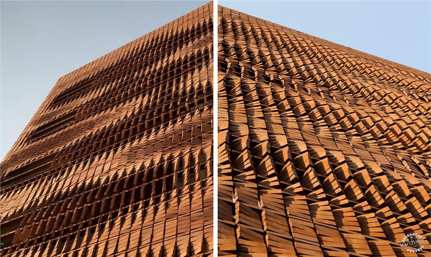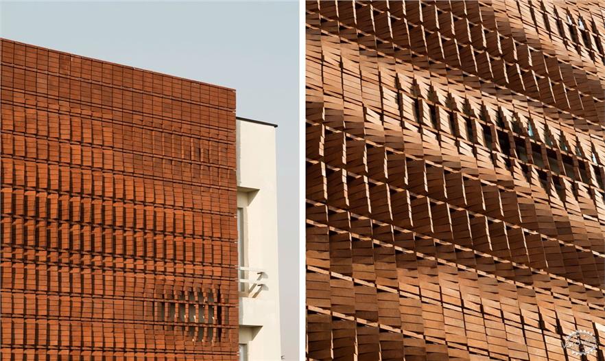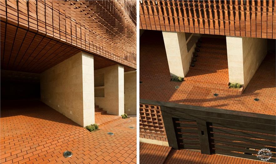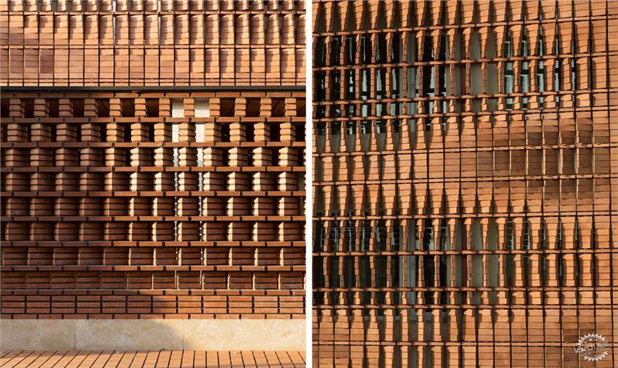 這種獨特的磚材料即使單獨使用時也可以創(chuàng)建一個動態(tài)的立面,使得建筑內(nèi)外一直充滿著活力。白天,立面的彩色紋理的變化創(chuàng)造出不同的光影,內(nèi)部空間也一樣。