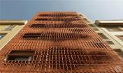 該建筑立面概念的靈感來自周圍的社區(qū)結(jié)構(gòu)。磚的紋理反射出周圍環(huán)境混亂的天際線,建筑的入口位置也考慮到了鄰里之間的隱私與方便往來。建筑立面上磚材料以不同的旋轉(zhuǎn)角度排列,創(chuàng)造出不同的開口,旋轉(zhuǎn)的角度是通過內(nèi)外之間的對話進(jìn)行調(diào)整,由太陽方向、日光和公寓的分散程度決定。復(fù)雜的立面形式、有限的項目工期和經(jīng)濟(jì)條件,迫使項目團(tuán)隊尋找新的施工方法以完成立面設(shè)計,而該方法是通過使用穿孔磚而摒棄砂漿的使用。