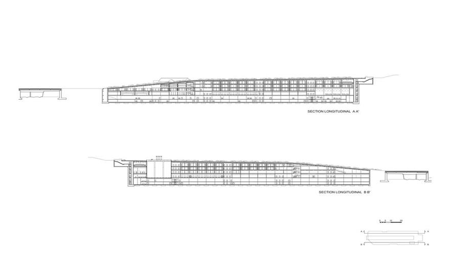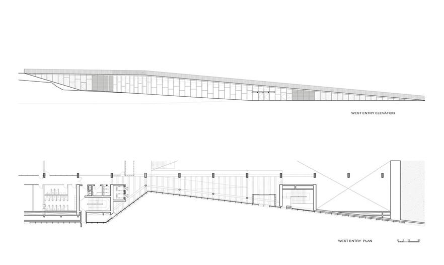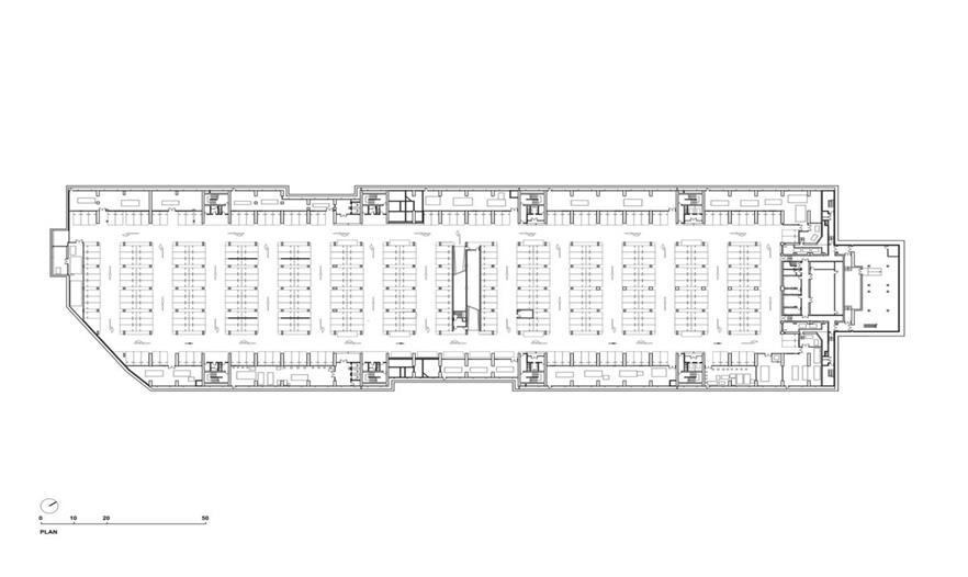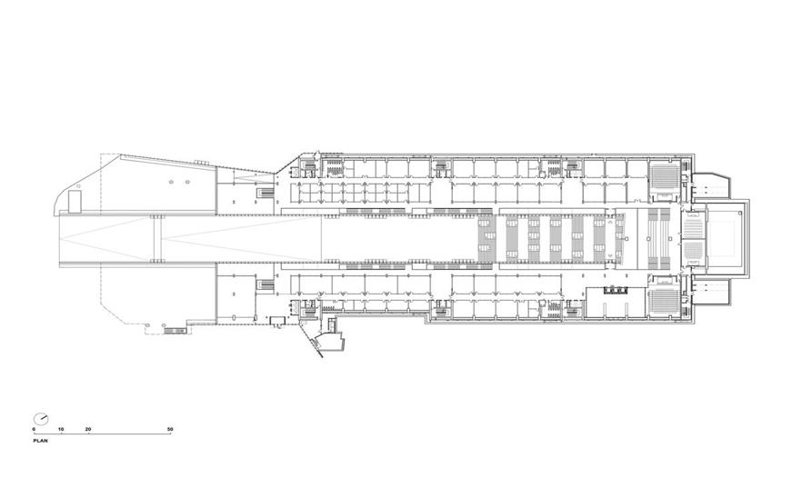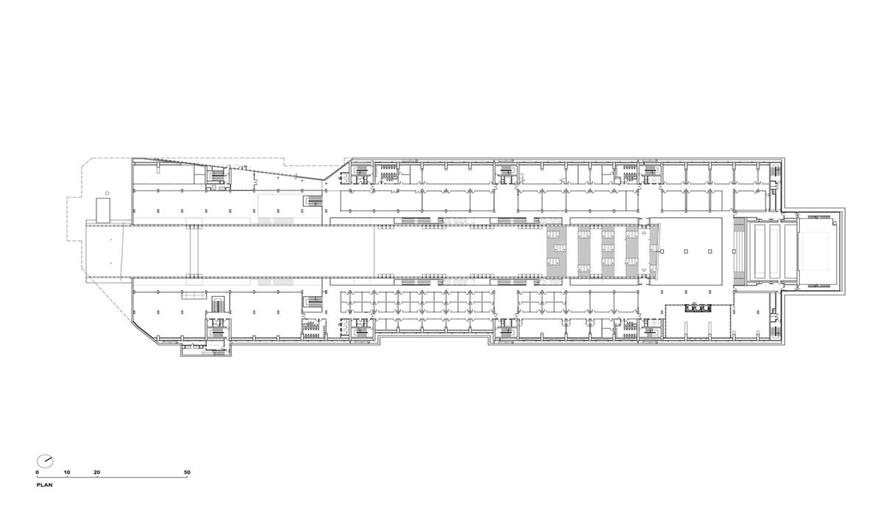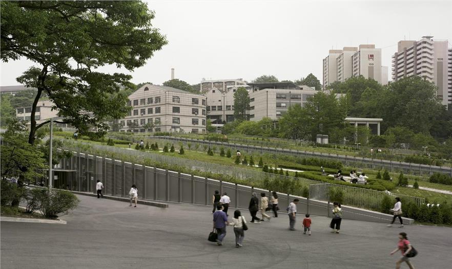 與更大的校園相聯(lián)系以及城市“更大的場(chǎng)所(larger than site)”的要求決定了該項(xiàng)目的復(fù)雜性,作為回應(yīng),一個(gè)景觀化的解決方案將梨花女子大學(xué)和城市的肌理編織在了一起。建筑的概念是“校園峽谷(campus valley)”,與建筑上面的運(yùn)動(dòng)帶(sports strip)相結(jié)合,創(chuàng)造了一個(gè)新地形,并在多個(gè)方面影響著周?chē)木坝^。