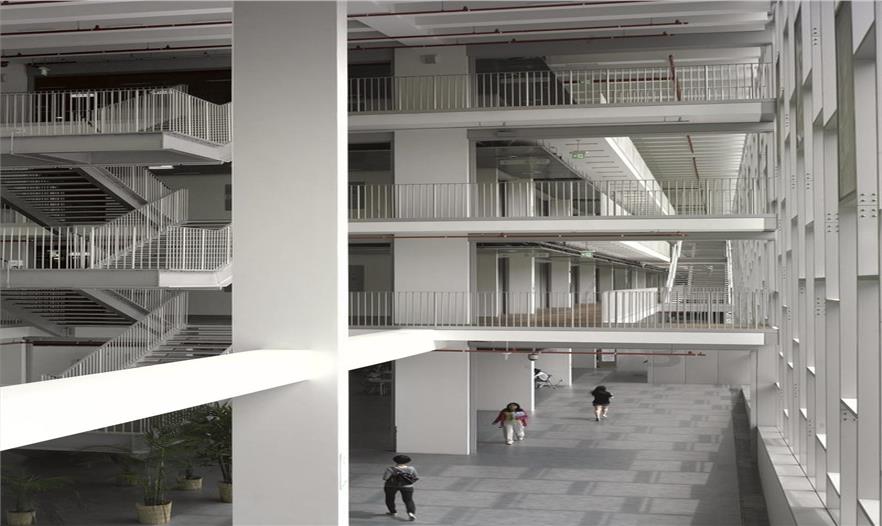 運(yùn)動(dòng)帶就像是一個(gè)水平的公告板,將校園的生活展示給城市。如一條引人進(jìn)入的香榭麗舍大街一樣,匯聚學(xué)生與訪客。