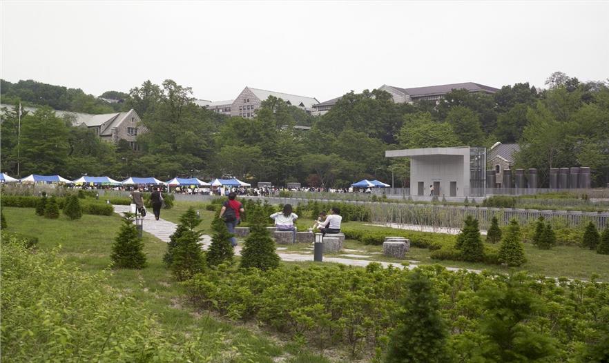 運(yùn)動(dòng)帶與峽谷一樣,整合了各種元素。它是一條通向梨花大學(xué)的新路,其中可以進(jìn)行日常體育運(yùn)動(dòng),可以進(jìn)行每年的節(jié)日活動(dòng)和慶典,可以滿足大學(xué)和城市中人們的聚會(huì)。這是對(duì)于一個(gè)區(qū)域是最為重要的,它可以在一年中都令這里保持活力。